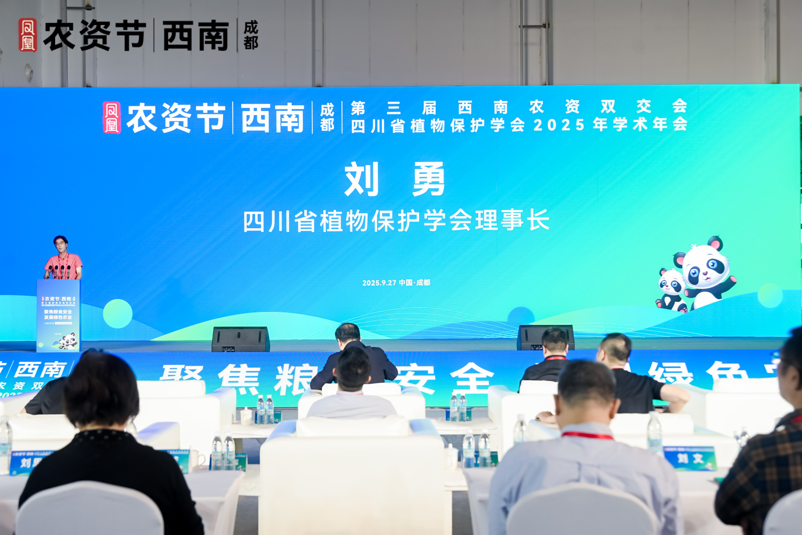 9月27日,学会2025年学术年会与“第三届西南农资双交会”同期在成都中国西部国际博览城启幕。本届学术年会以“聚焦粮食安全,发展绿色农业”为核心主题,由四川省植物保护学会、中国农业技术推广协会联合主办,重庆、四川多地行业协会协办,搭建起集科技展示、学术交流、产销对接等一体化平台。中国农业技术推广协会会长陈生斗、四川省植物保护学会理事长刘勇、重庆市种子站(植物保护站)副站长郭伦,以及土壤肥料专家高祥照等行业领导、专家学者、企业代表与媒体出席活动。