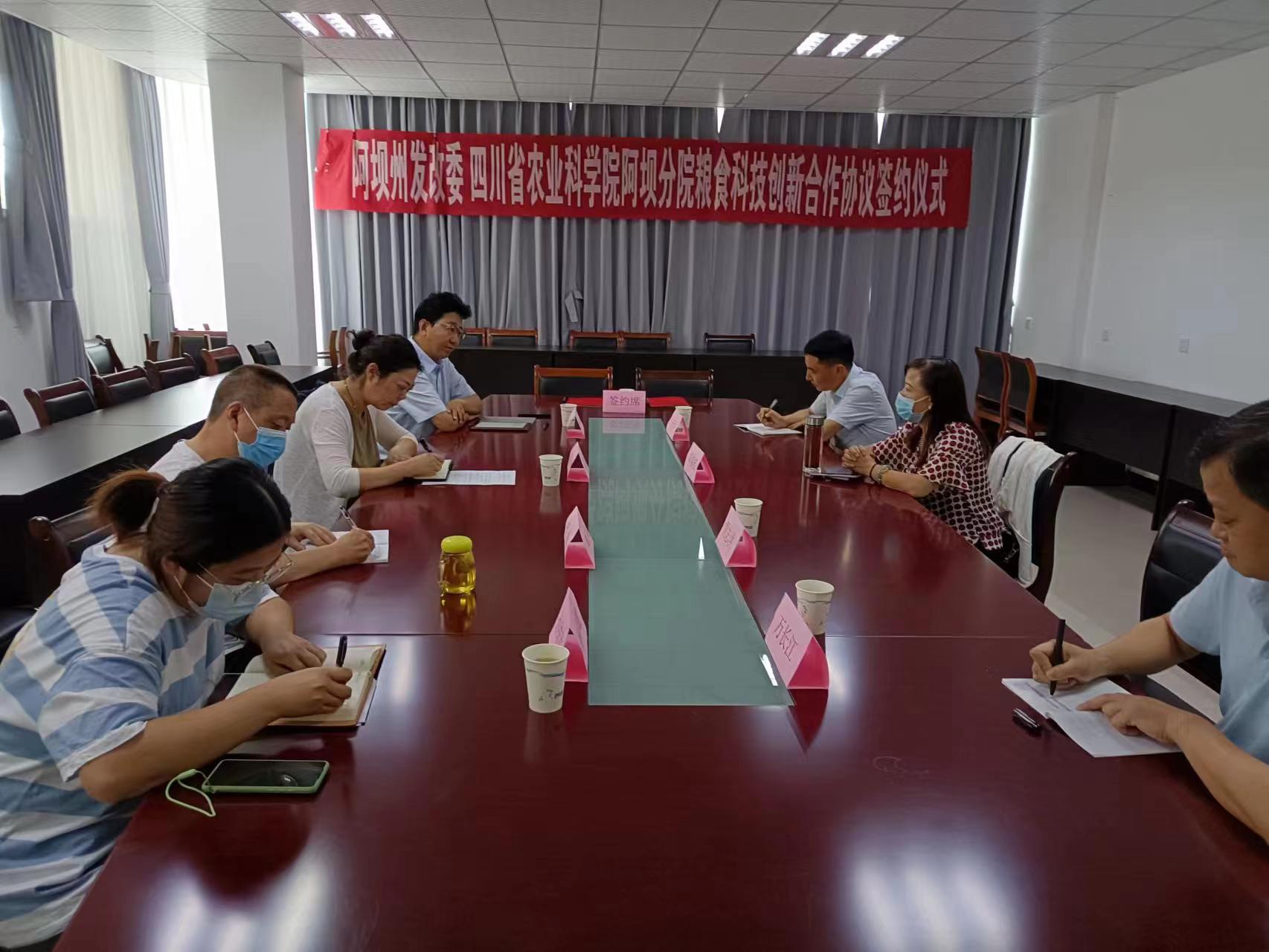 会上,阿坝州发改委和省农科院阿坝分院就阿坝州粮食安全生产、粮食安全储备科技创新等问题进行交流,并签订《粮食科技创新合作协议》,双方将通过合作开展科研项目、成果转化示范推广,提升粮食安全战略科技支撑水平,为新时代“阿坝粮仓”保驾护航。