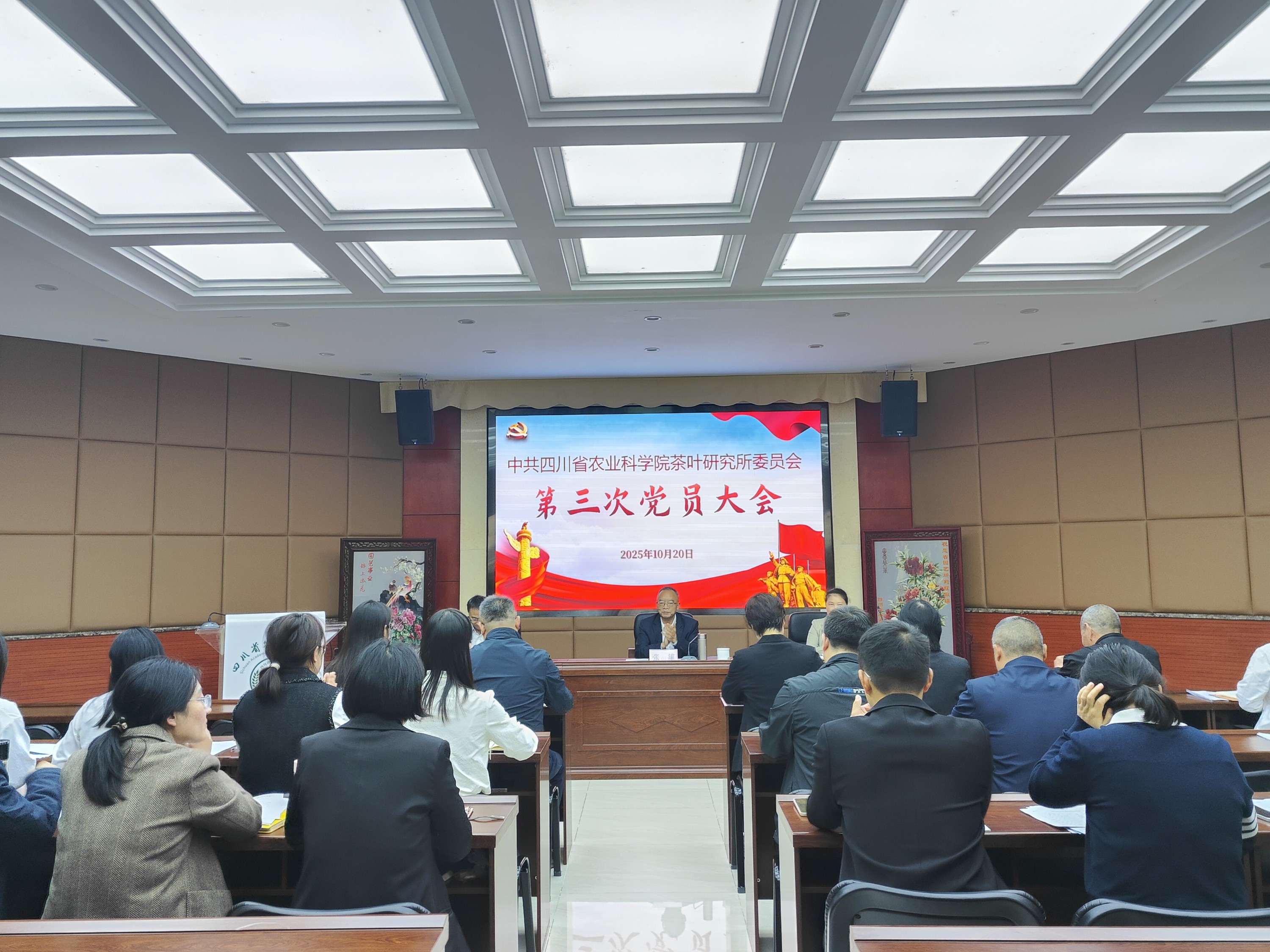 2025年10月20日,中共四川省农业科学院茶叶研究所委员会第三次党员大会顺利召开,选举产生新一届所党委委员和纪委委员。会议由所党委书记罗凡主持,全体党员参加会议。院党委副书记、院机关党委书记张雄,院党委办公室主任伍红梅、副主任汪闵莅临指导。
