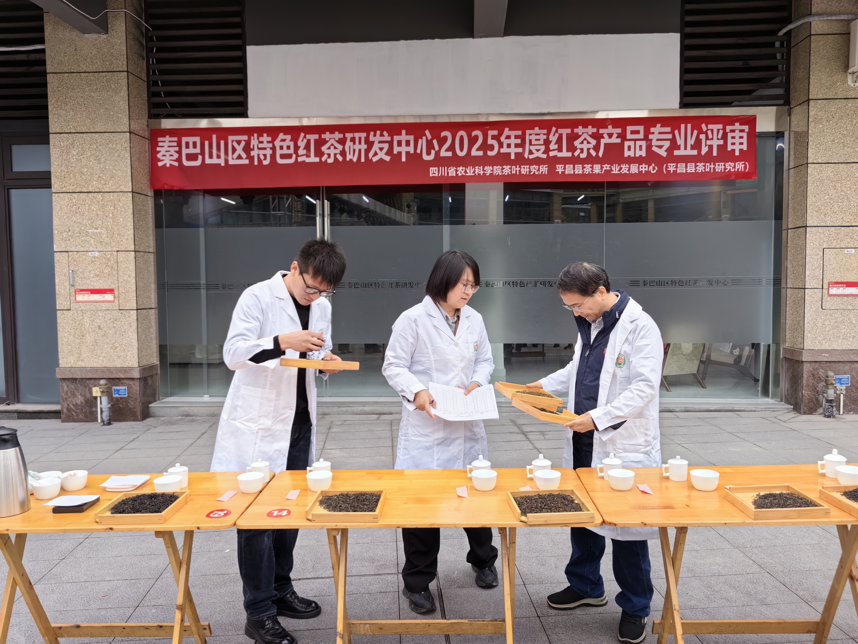 随后,罗凡一行与平昌县茶果产业发展局领导班子一起实地调研平昌县茶产业情况,并前往了“院定点帮扶专项-平昌茶树种质资源圃”实施地,对资源圃茶树田间性状、平昌本地茶树种质资源情况等进行了调查。在平昌县“秦巴山区特色红茶研发中心”对平昌县茶企特色红茶新产品进行了专业审评,并针对感官审评结果,现场开展了红茶加工技术培训。
