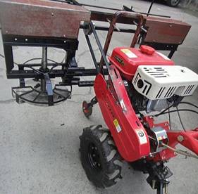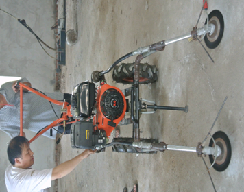 国家蚕桑产业技术体系研发中心设施与机械研究室(四川省农科院蚕业研究所)利用现有割禾机和燃油微耕机的动力,改加伐条装置,研制了以中型行走式微耕机为主体,增加枝条割伐带双锯盘活动架,同时割伐两行桑树枝条并实现一机多用。