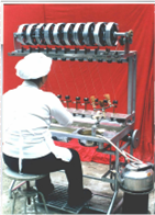 适用于自动缫缫丝厂进行工艺设计,配茧的试缫以及特殊地区分户缫丝,有缫细丝(20/22旦)和缫粗丝的各类型简易缫丝机,如单20绪缫丝机、双倍20绪缫丝机、人力缫丝机、返丝机等多种型式供各种小型和家庭缫粗丝、细丝选择,尤其适用于东南亚各产茧国和非洲新兴蚕区缫丝,由四川省农科院蚕业研究所研制成功。