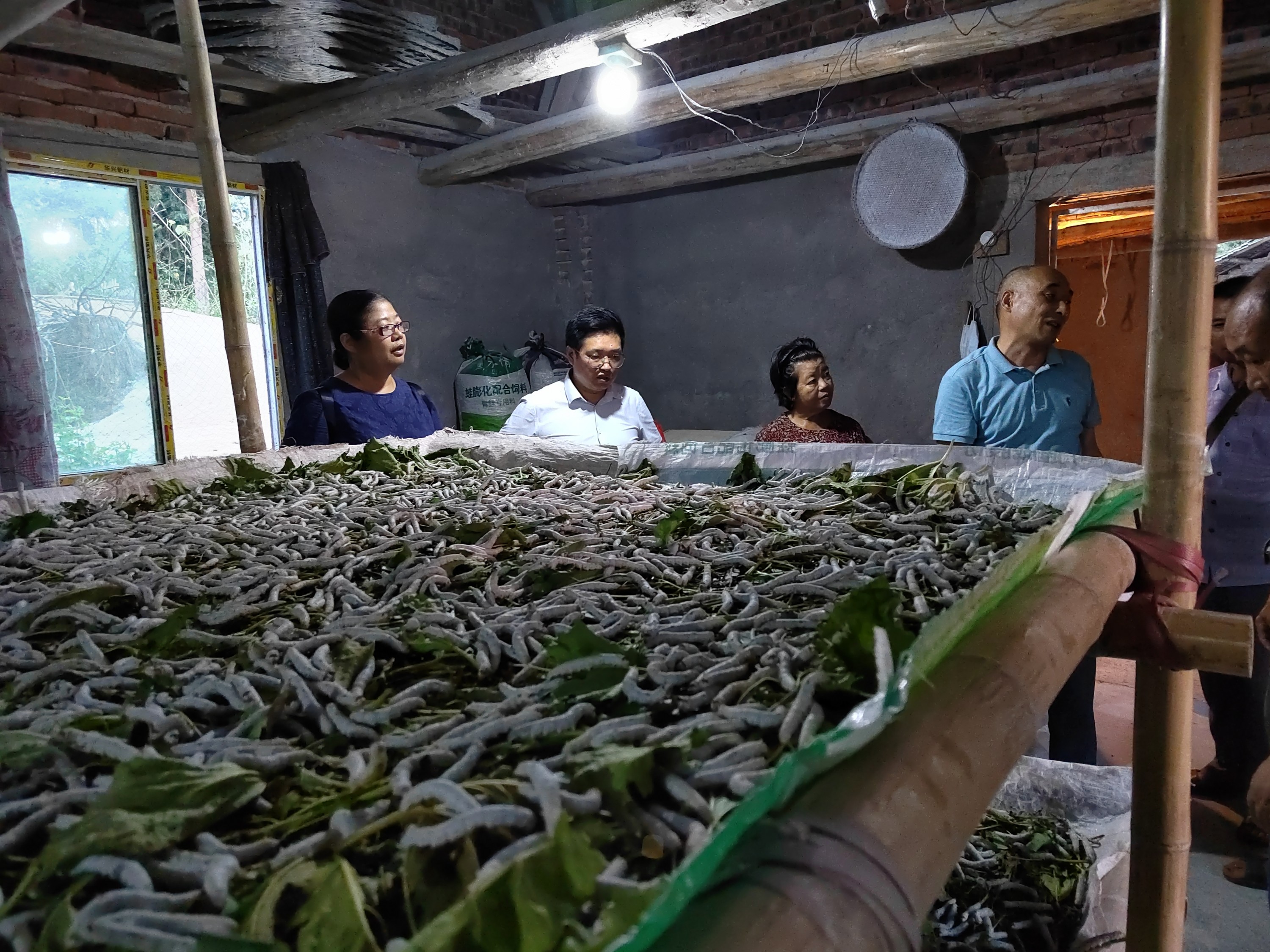 为认真执行“三区”人才专项计划,切实推动大竹巩固拓展脱贫攻坚成果同乡村振兴有效衔接,10月3日—4日,大竹县科技特派员专家团成员、省农科院蚕业所科技信息研究中心主任、《四川蚕业》主编陈义安副研究员,邀请四川蚕桑创新团队岗位专家刘俊凤研究员、所蚕桑试验示范中心主任王晓芬副研究员、所家蚕生命中心粟思源硕士前往大竹县妈妈镇,指导当地蚕桑产业发展。大竹县农业农村局、教育和科学技术局等部门领导陪同。