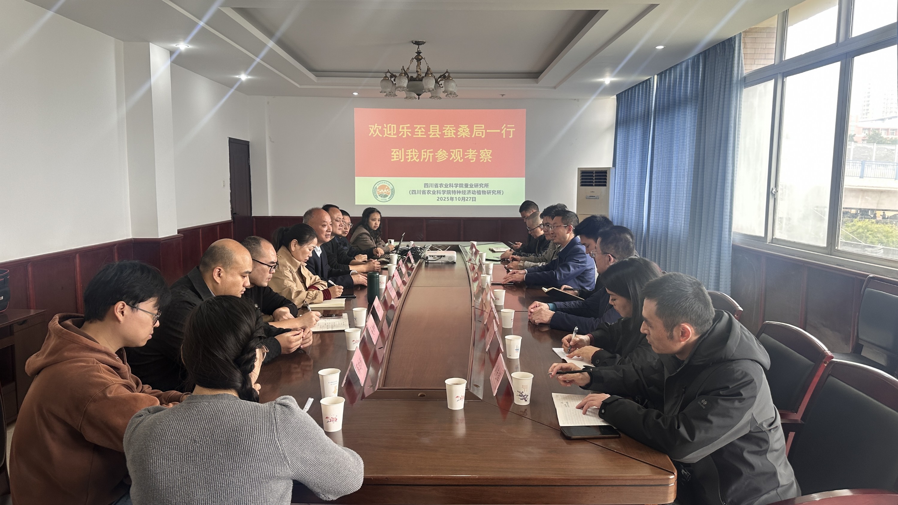 为加强院地合作,推进乐至县蚕桑全产业链发展,提高产业种养水平,10月27日乐至县蚕桑局局长唐洪全带队到院蚕业所开展全产业链考察学习,院蚕业所党委书记刘刚研究员、副所长殷浩研究员陪同考察团队对我所桑园及科研基地进行现场调研,并与党政办公室、科管办、科信中心、蚕病中心、综合利用中心等部门负责人及科技人员开展座谈。