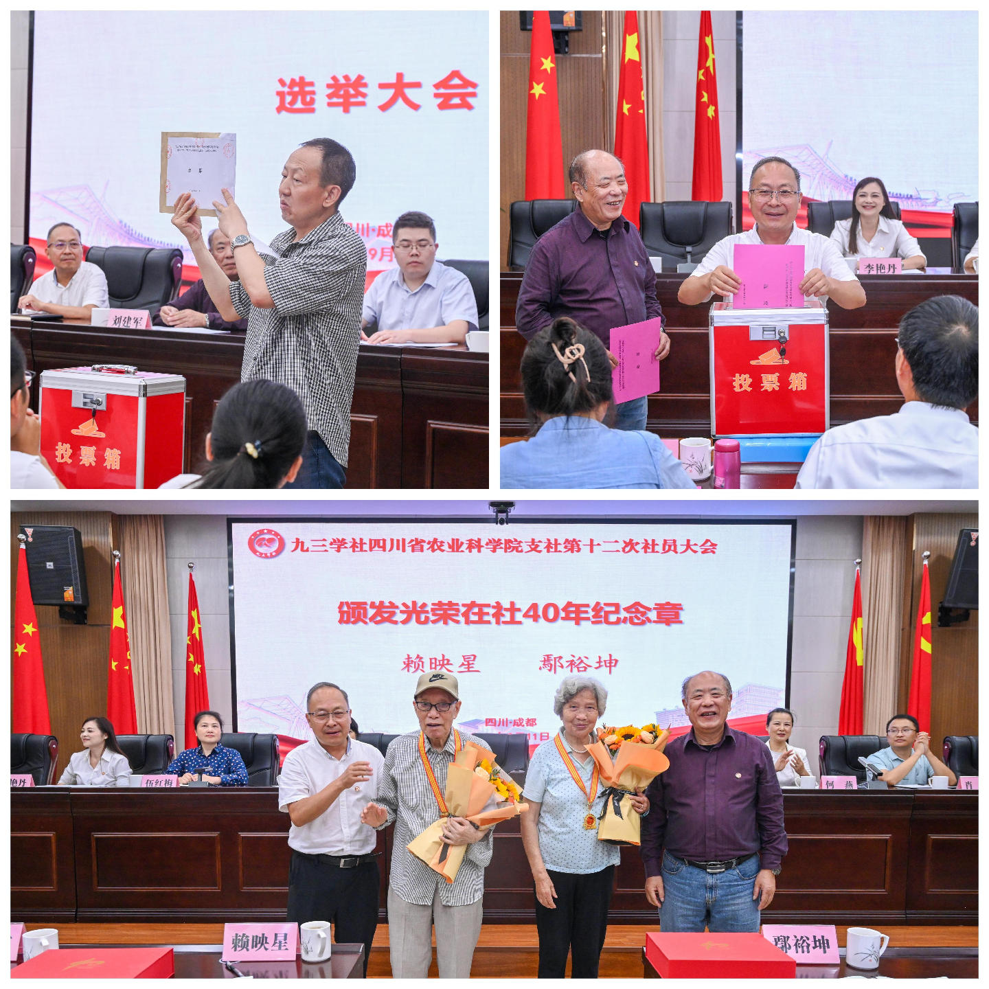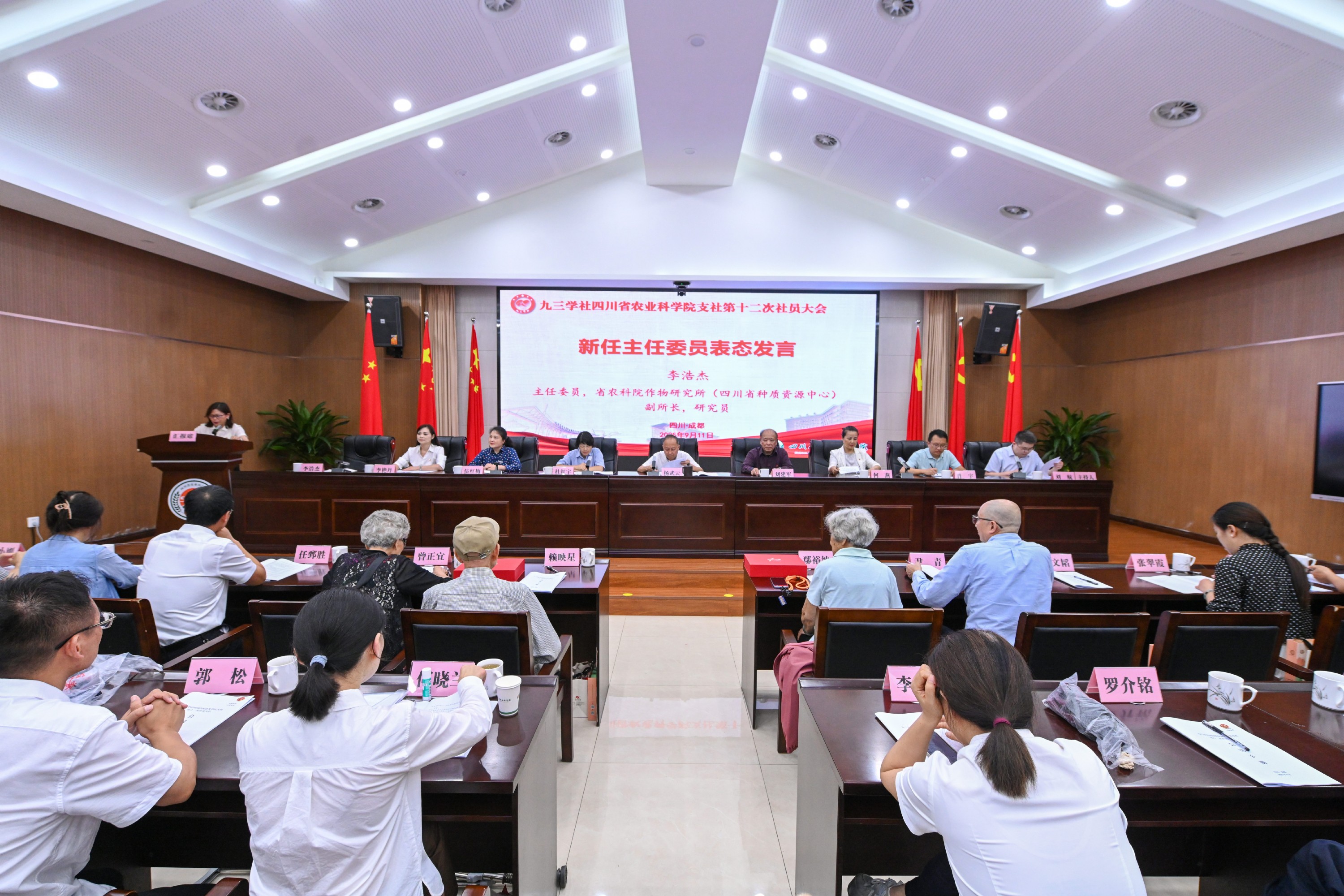 2025 年 9 月 11 日,九三学社四川省农业科学院支社召开了第十二次社员大会并完成换届工作。社省委会副主委、省政府参事杨武云,省农科院机关党委副书记杜红宇,党委办主任伍红梅,原社省委会副主委、省政府参事刘建军,社省委会组织处副处长刘航,科技处一级调研员李艳丹,社省直工委副主委何燕,内部监督委员会副主任尹青等领导到会指导。支社社员共50余人参会。