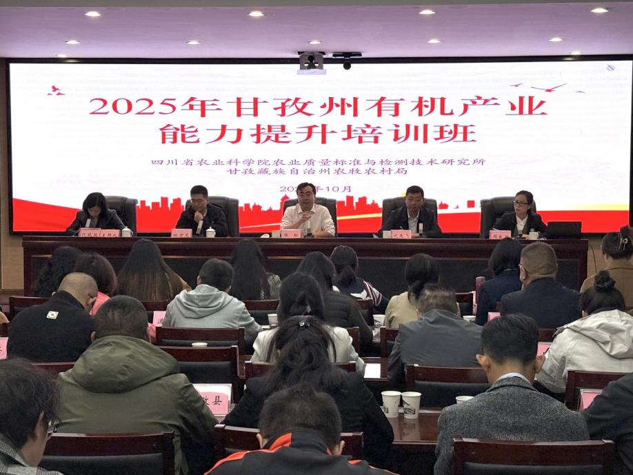 10月13日~10月15日,由甘孜州农牧农村局主办,四川省农业科学院农业质量标准与检测技术研究所承办的2025年甘孜州有机产业能力提升培训班在康定市成功举办。农业农村部农产品质量标准研究中心政策研究室主任陈松、省农产品质量安全中心主任林方龙、省绿色食品发展中心主任代天飞、甘孜州农牧农村局副局长周良艳、院质标所副所长代晓航出席了开班仪式,来自全州18个县的45名农技人员参加了此次培训。