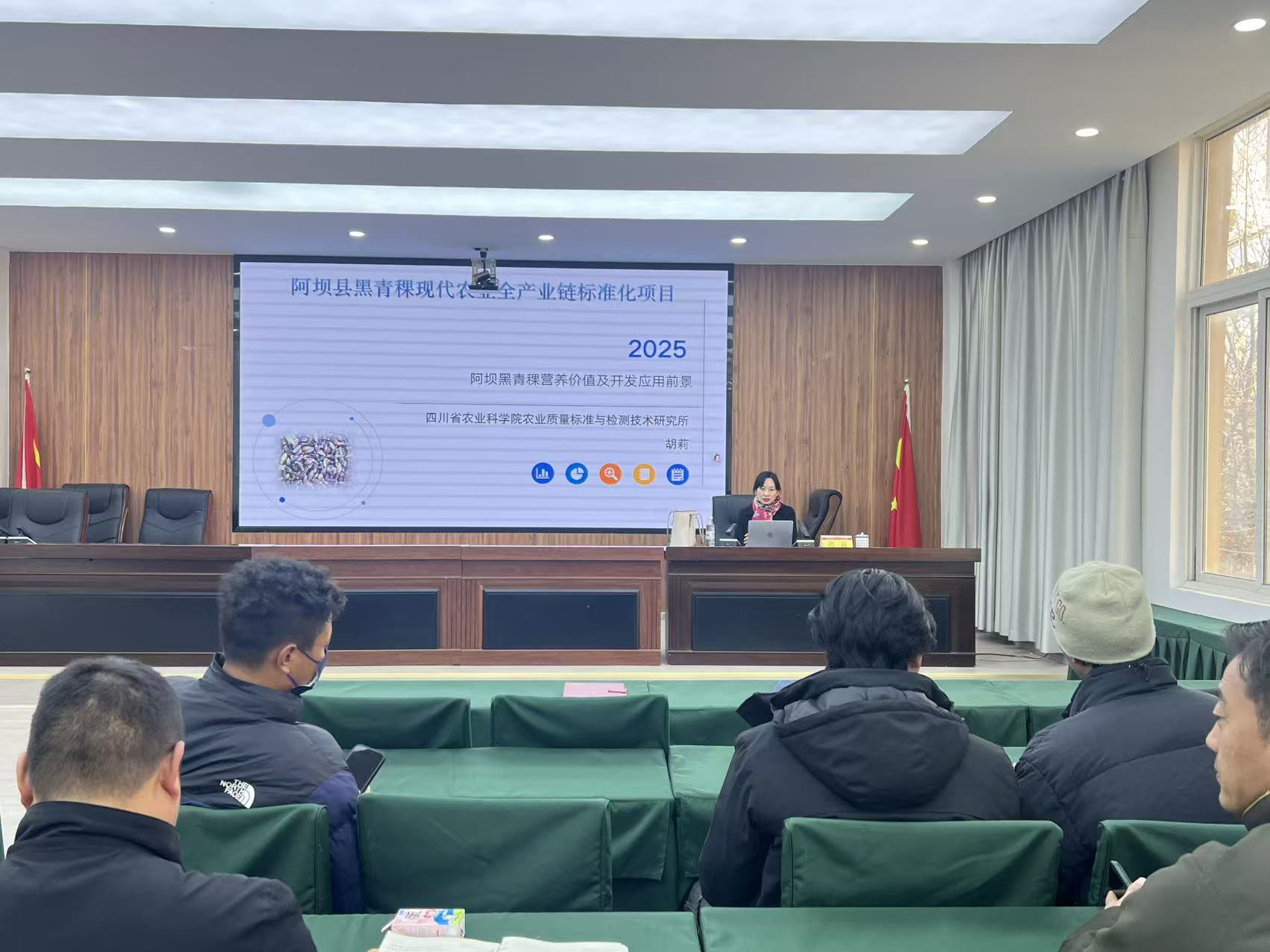 2025年12月6日—7日,院质标所副所长胡莉带队,“阿坝黑青稞”项目组成员同行,赴阿坝县开展培训及项目结题验收工作。阿坝县科学技术和农业畜牧水务局局长康成品、副局长李辉及验收小组成员参加,经验收组认真核实项目任务、成果及材料后,项目顺利通过验收。