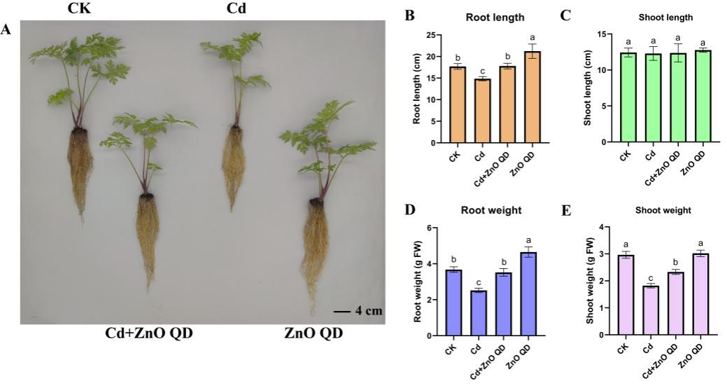 图二、 ZnO量子点缓解川芎Cd胁迫表型统计