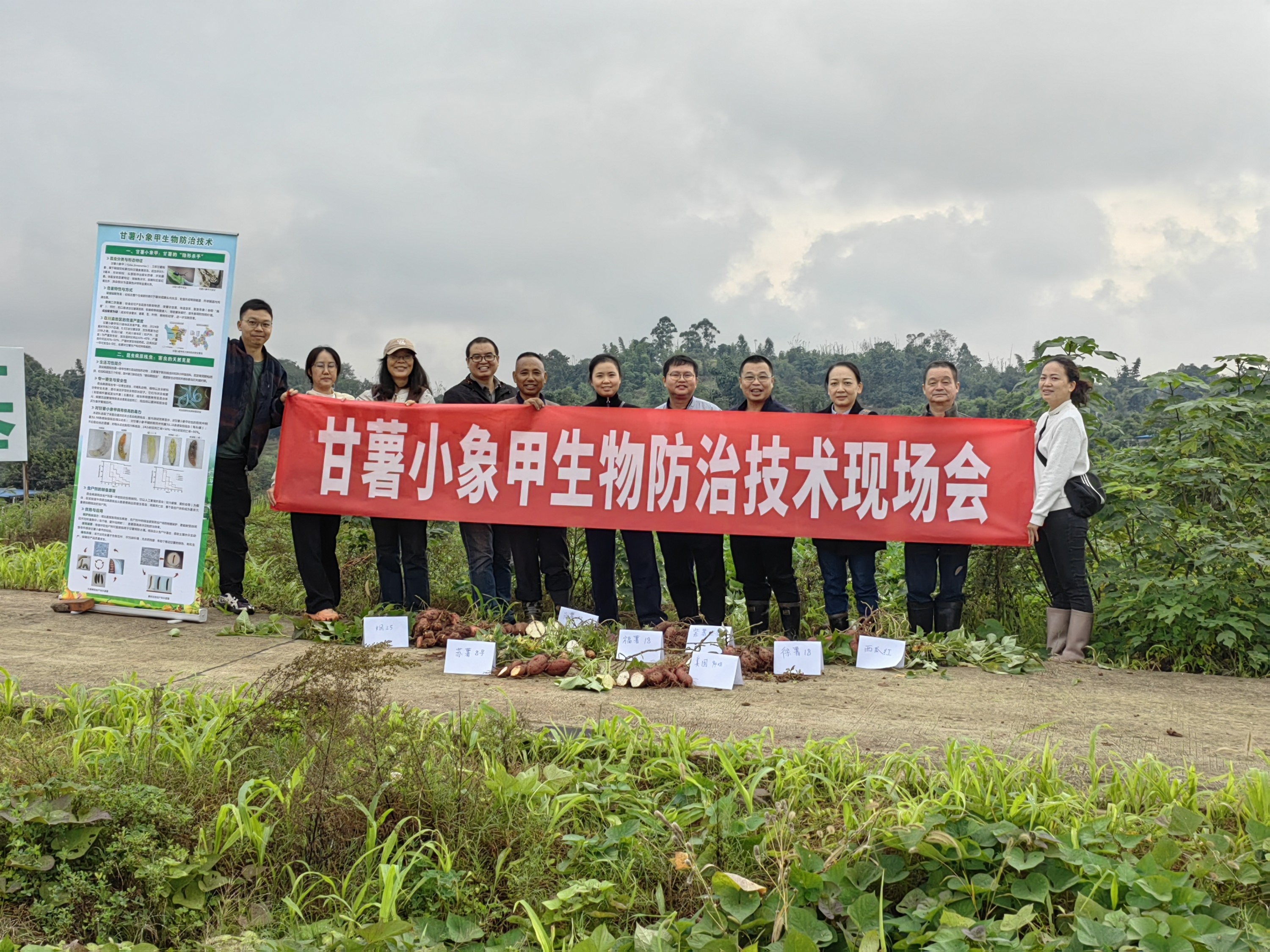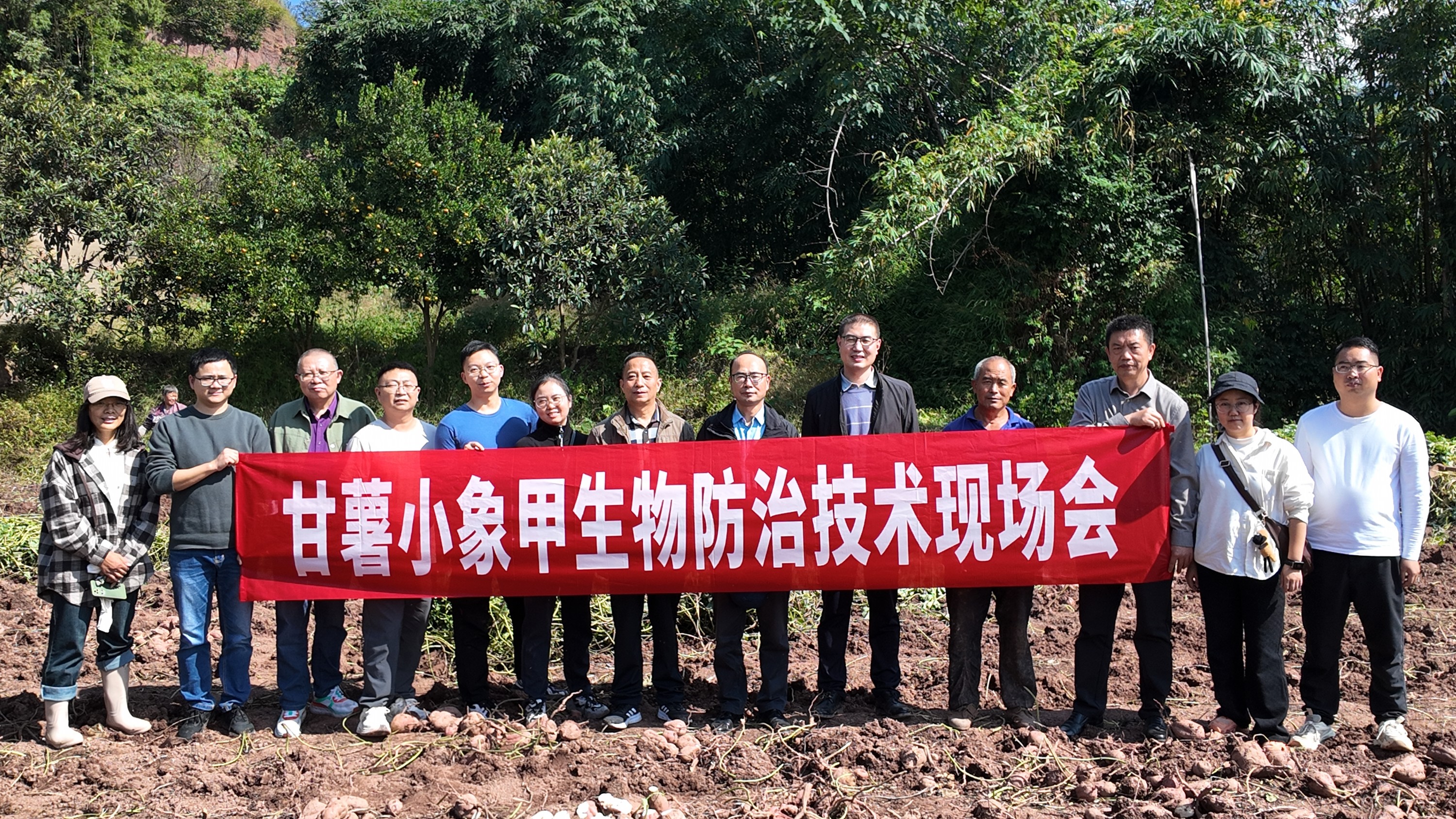 2025年6-10月,为有效控制甘薯小象甲的田间危害与扩散蔓延,院植保所李星月研究员、陈晓娟副研究员带领团队成员于甘薯生长季,国内首次在泸州市叙永县龙凤镇、重庆市荣昌区河包镇开展了利用“昆虫病原线虫”虫尸剂为生防制剂的甘薯小象甲全程生物防治技术示范。