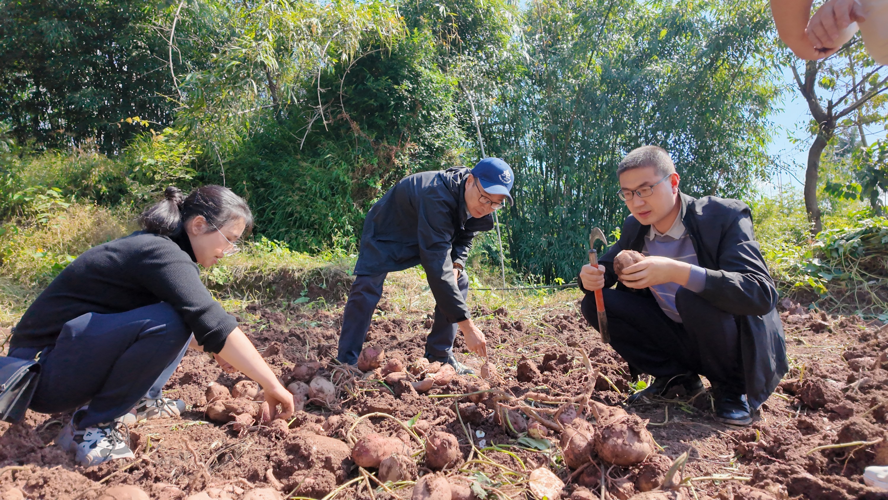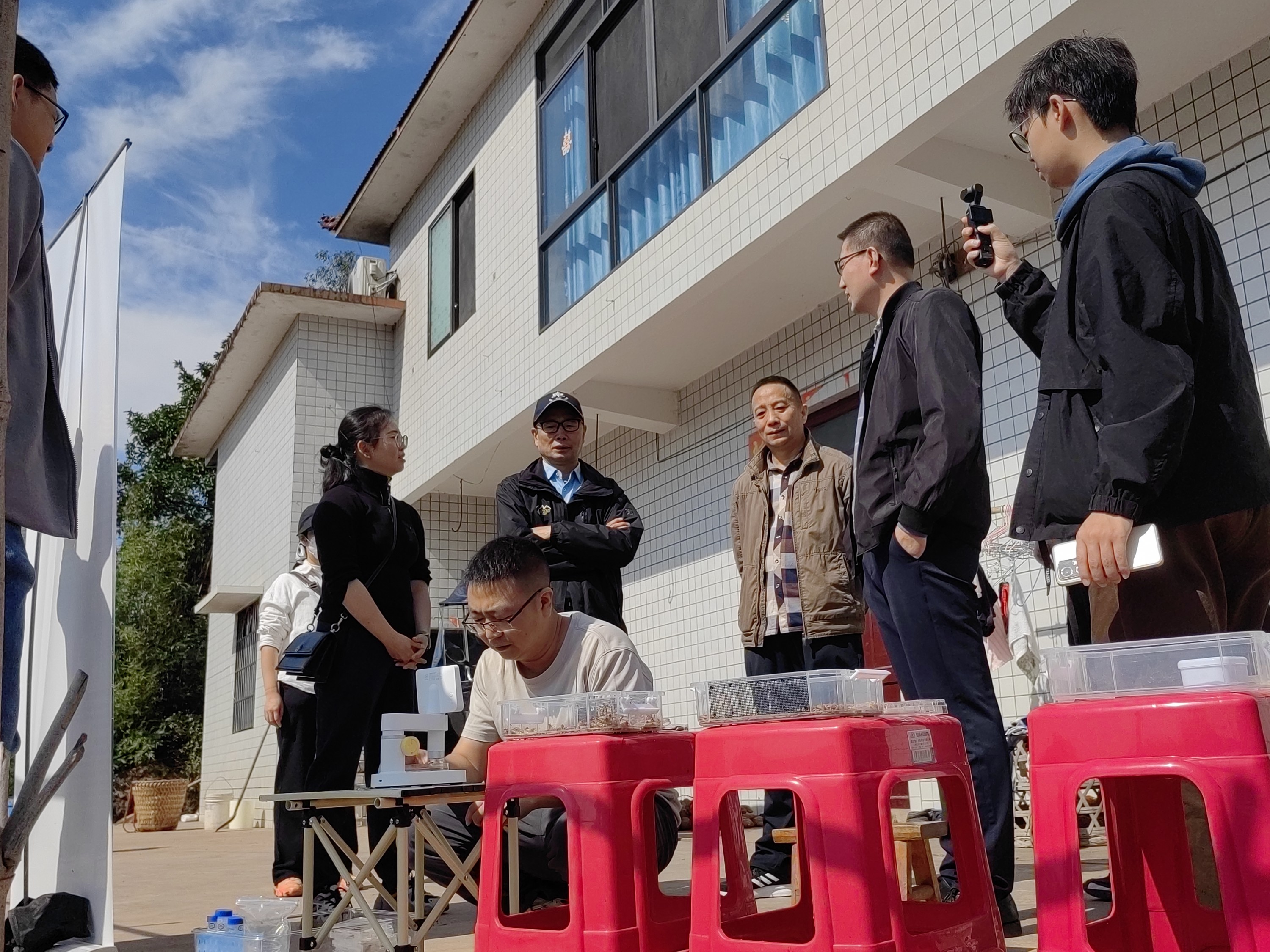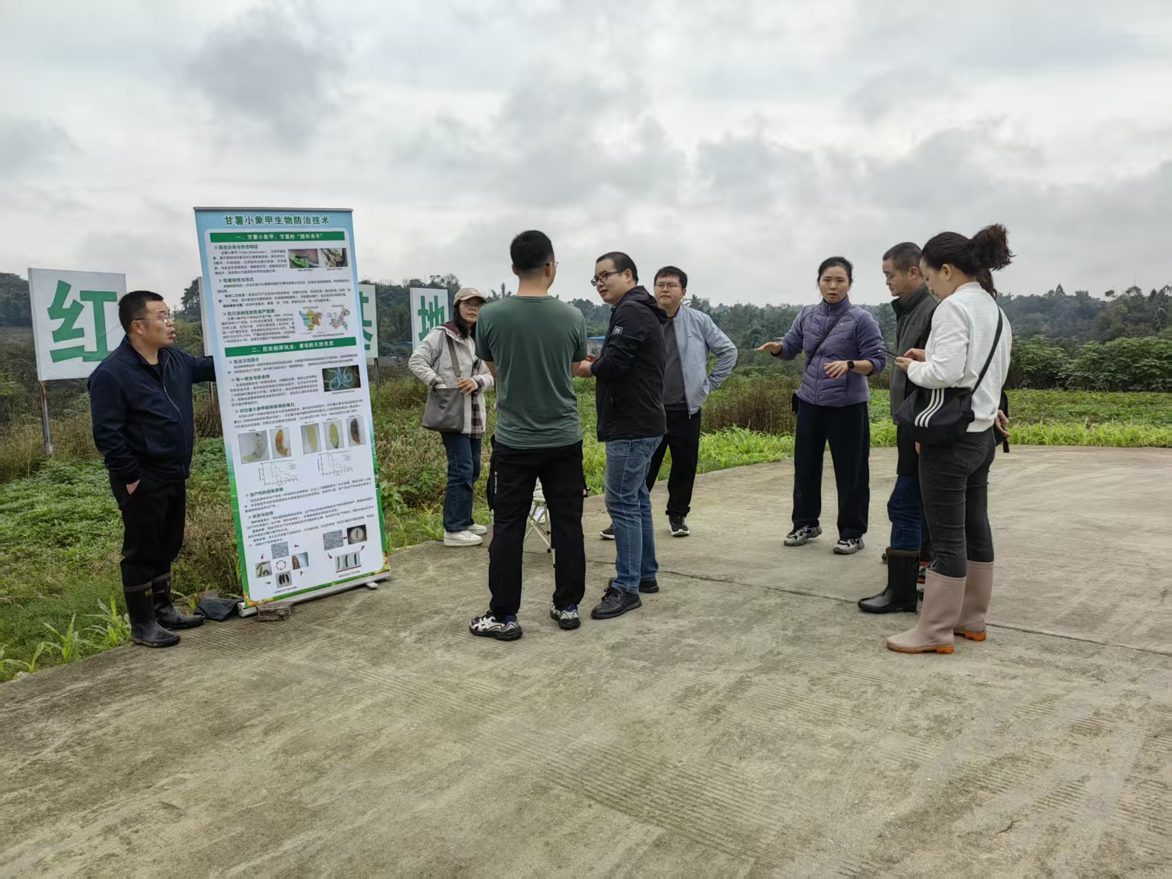 2025年10月27-28日,院植保所邀请四川省农业农村厅植物保护站尹勇研究员、四川农业大学李庆教授、院生核所副所长冯俊彦副研究员、叙永县植物保护站站长黄芝栋高级农艺师、叙永县龙凤镇农办主任黄强高级农艺师,重庆市农业科学院郭萧研究员、西南大学段美春副教授、重庆市荣昌区农技站杨谊昌研究员、荣昌区农业农村委叶玉梅副主任、荣昌区农业农村局植保站唐春梅站长,作为两个田间鉴定专家组,分别在泸州市叙永县龙风镇、荣昌区河包镇对院植保所完成的昆虫病原线虫生物防治甘薯小象甲技术示范进行了田间鉴定及防效核查,“农民日报”的姚记者全程参与报道。
