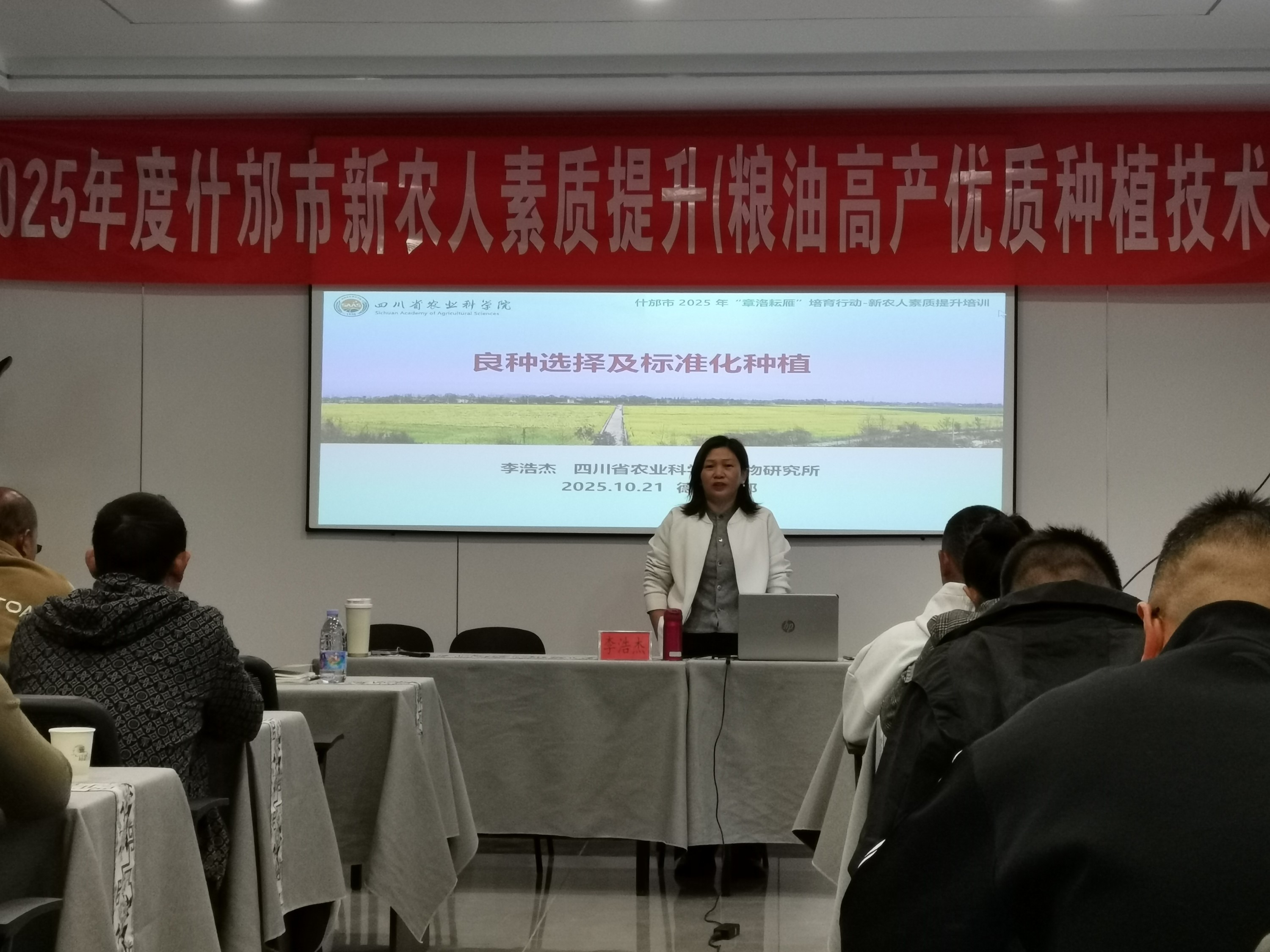 10月上旬以来,我省遭遇连续阴雨天气,严重影响小春作物尤其是油菜的适期播种。为深入贯彻国家“藏粮于地、藏粮于技”战略,落实秋种工作部署,积极应对近期持续华西秋雨天气对秋播生产的不利影响,院作物所油菜专家李浩杰研究员率团队成员崔成研究员、郑本川副研究员等,多次奔赴生产一线开展科技服务,集中培训种植大户,全力保障油菜抢时播种,稳定我省播种面积。