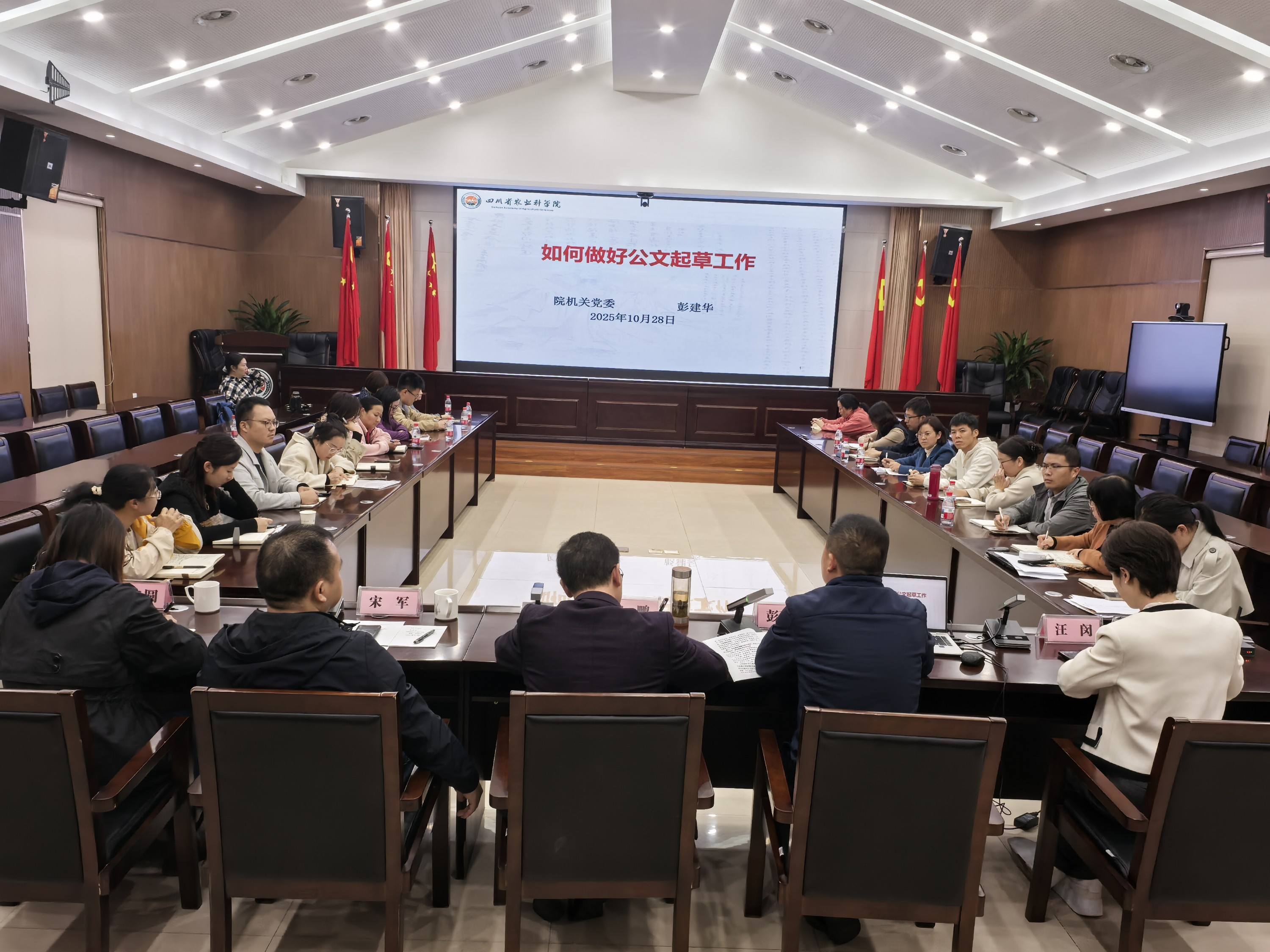 为进一步提升干部职工公文与信息写作水平,2025年10月28日,院生核所特邀院机关党委专职副书记彭建华、院党委办公室副主任汪闵开展公文写作专题培训。培训会由该所纪委书记、副所长邓自圆主持,全所在家党委班子成员、行政部门工作人员及科研团队代表参加。