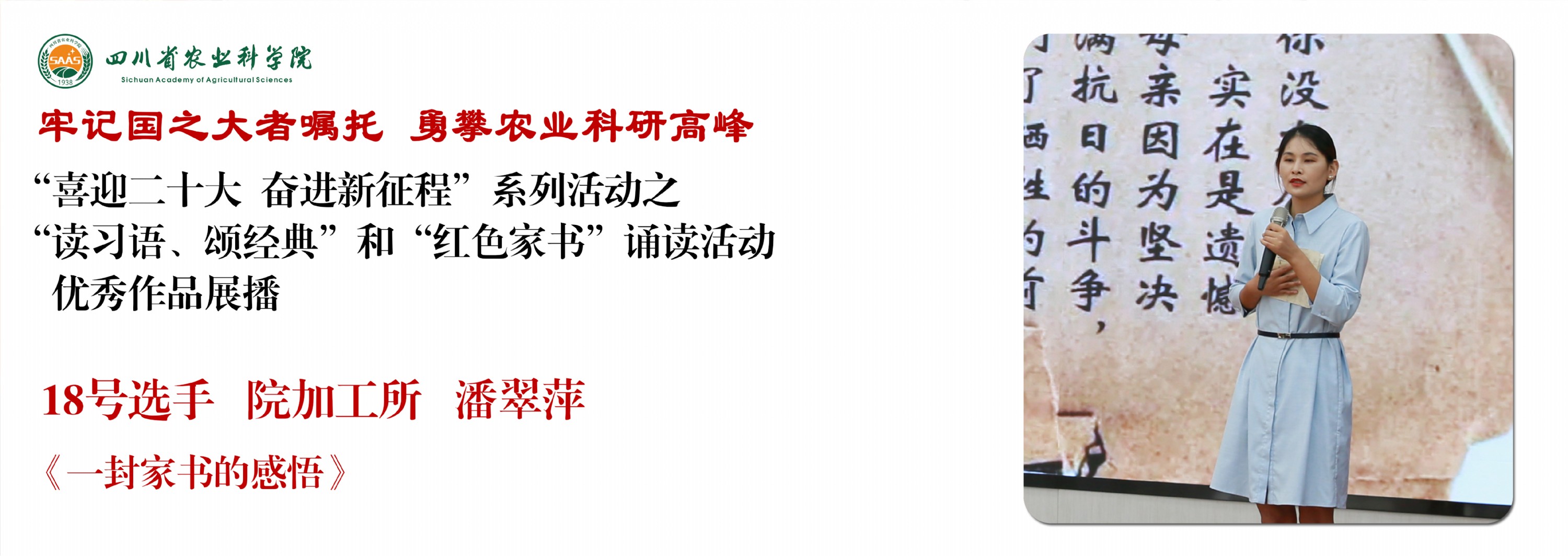 18号选手   院加工所潘翠萍  《一封家书的感悟