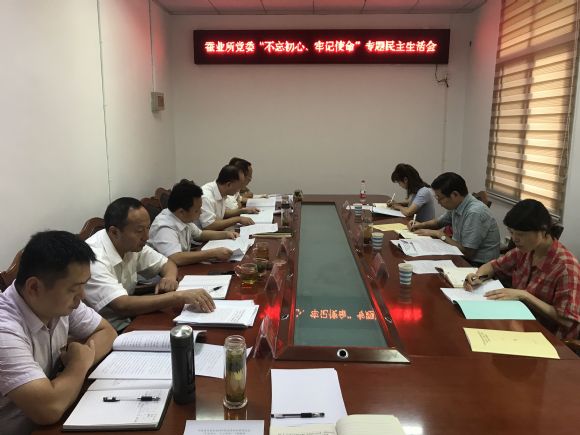根据《中共四川省纪委机关 中共四川省委组织部 中共四川省委“不忘初心、牢记使命”主题教育领导小组关于第一批主题教育单位开好“不忘初心、牢记使命”专题民主生活会的通知》(川组发〔2019〕9号)文件要求,蚕业所党委于8月30日上午召开了“不忘初心、牢记使命”主题教育专题民主生活会。所党委班子全体成员参加,会议由所党委书记刘刚主持。省农科院主题教育督导组组长、院党委书记吕火明,院主题教育督导组成员、院党群处党支部书记杜红宇,院党群处科长梁婧到会督导。