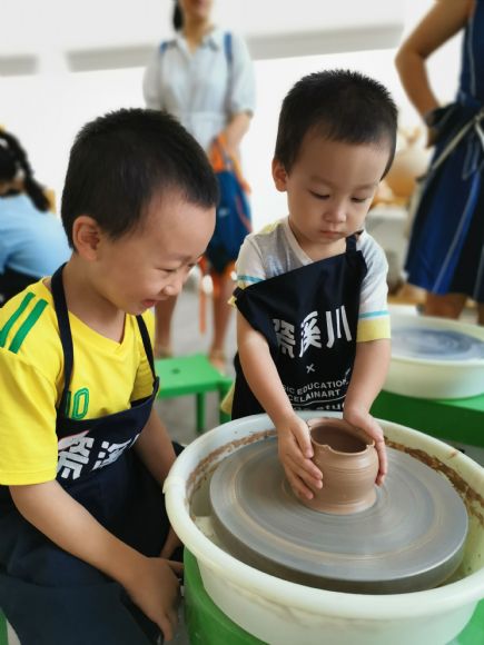 活动现场,陶艺老师首先向孩子们讲解陶瓷基本知识、陶瓷文化的发展进程。随后,陶艺老师带领孩子们进行陶艺拉胚体验,老师手把手教孩子们学习拉坯,每个孩子都学得很认真。很快,孩子们就可以独立操作了,他们纷纷发挥想象,认真专注地进行创作。整个活动中,大人小孩的脸上都洋溢起激情、喜悦,孩子们度过了一次美妙的亲子时光。