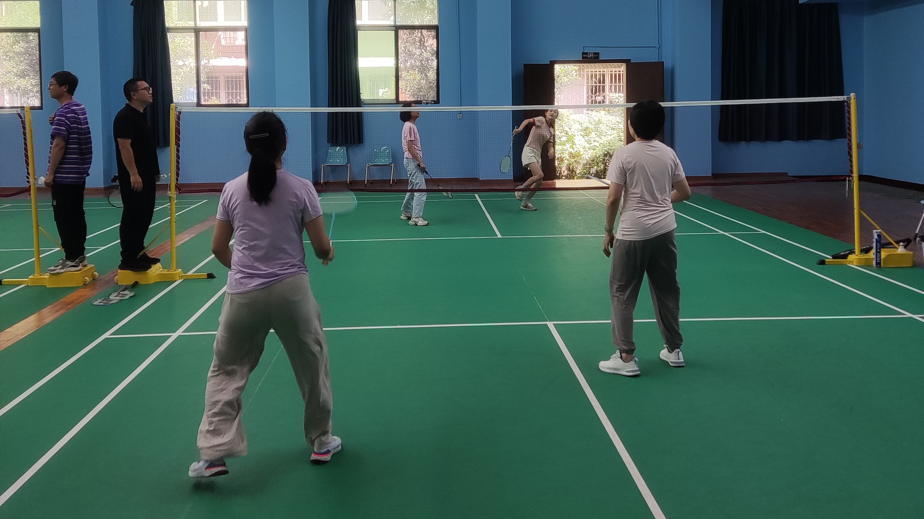 赛前举行了简短的开幕式,卢代华所长对活动致辞,工作人员现场讲解了比赛规则,并带领全体队员做赛前热身运动。随后,各项比赛正式开始。按照5个单项比赛,在现场裁判、计分人员、成绩监督人员等工作人员的组织下,各位队员按照报名表依序上场。赛场上,队员们锚足干劲、奋力拼搏。矫健的身影、飒爽的英姿在场上灵秀舞动。羽毛球拍上下翻跃,羽毛球随之在球场两端来回疾飞。一时间爽朗的扣球声、吱吱的脚步声、响亮的呐喊声不绝于耳,人群中不时爆发出阵阵喝彩。比赛现场气氛热烈,处处洋溢着欢乐和笑语。