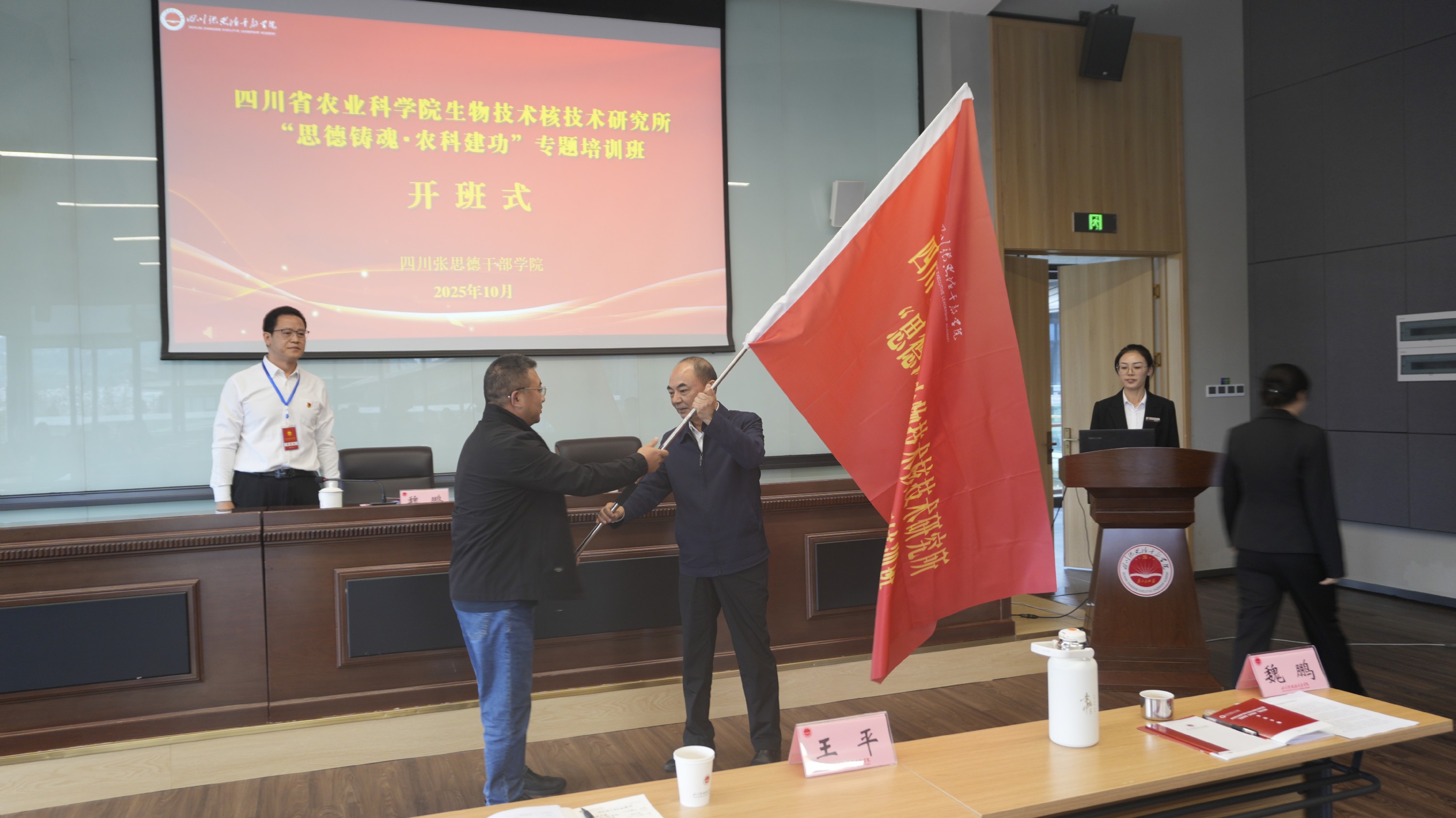 开班式上,四川张思德干部学院副院长王英龙致欢迎辞,院生核所党委书记魏鹏作动员讲话。魏鹏强调,全体学员要珍惜此次难得的学习机会,静下心来深耕理论知识,切实提高自身理论认识水平,学习期间多交流互动、提升思想认识,严格遵守学习纪律,切实将学习成果转化为推动工作的强大动力和不断提升干事创业的本领,为农业科研事业高质量发展贡献力量。