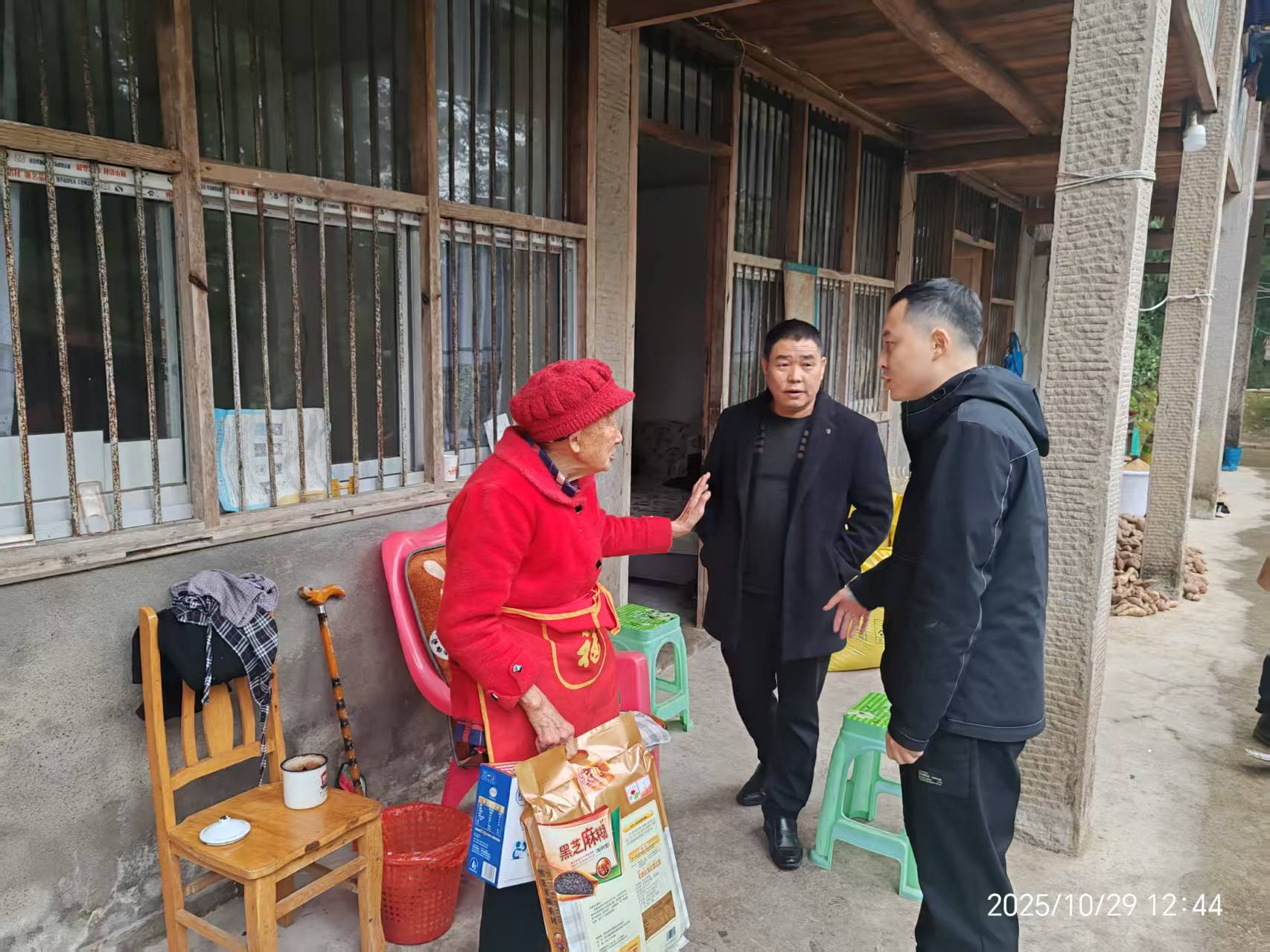 金秋送爽,丹桂飘香,在重阳节来临之际,四川省畜牧科学研究院派驻平昌县望京镇八柏村驻村工作队联合村“两委”干部开展走访慰问活动,为村内困难、独居老人送去生活物资,以实际行动践行“我为群众办实事”的初心承诺,让老人们在重阳节感受到组织的温暖和关怀。