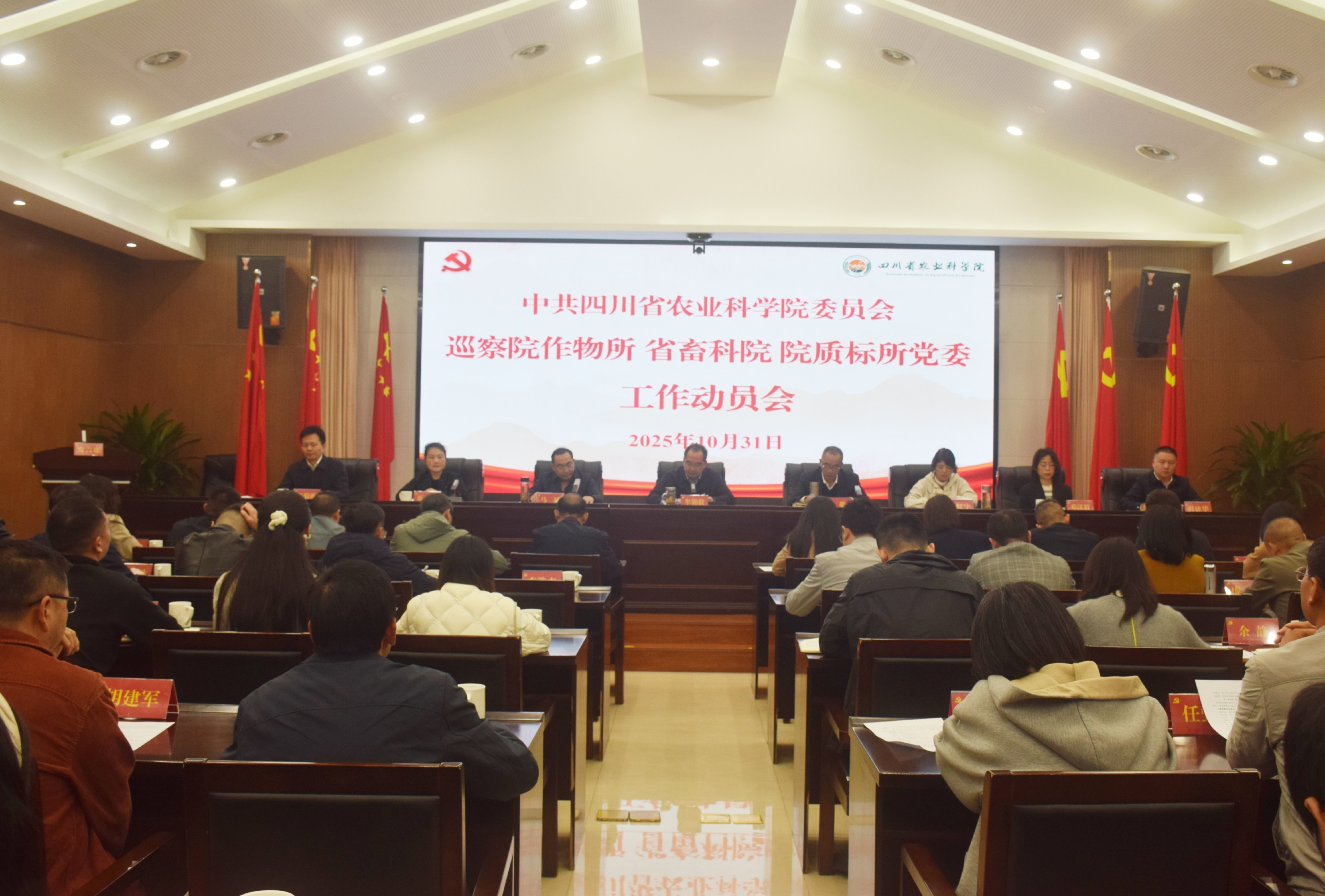 按照院党委关于巡察工作的统一部署,2025年10月31日上午,院党委巡察组在院机关一楼会议厅召开了巡察院作物所、省畜科院、院质标所党委工作动员会。院党委书记、院长、院党委巡察工作领导小组组长牟锦毅出席会议并讲话。院党委副书记、院机关党委书记、院党委巡察工作领导小组副组长张雄出席并主持会议。驻农业农村厅纪检监察组副组长、二级巡视员、院党委巡察工作领导小组成员马斌出席会议。