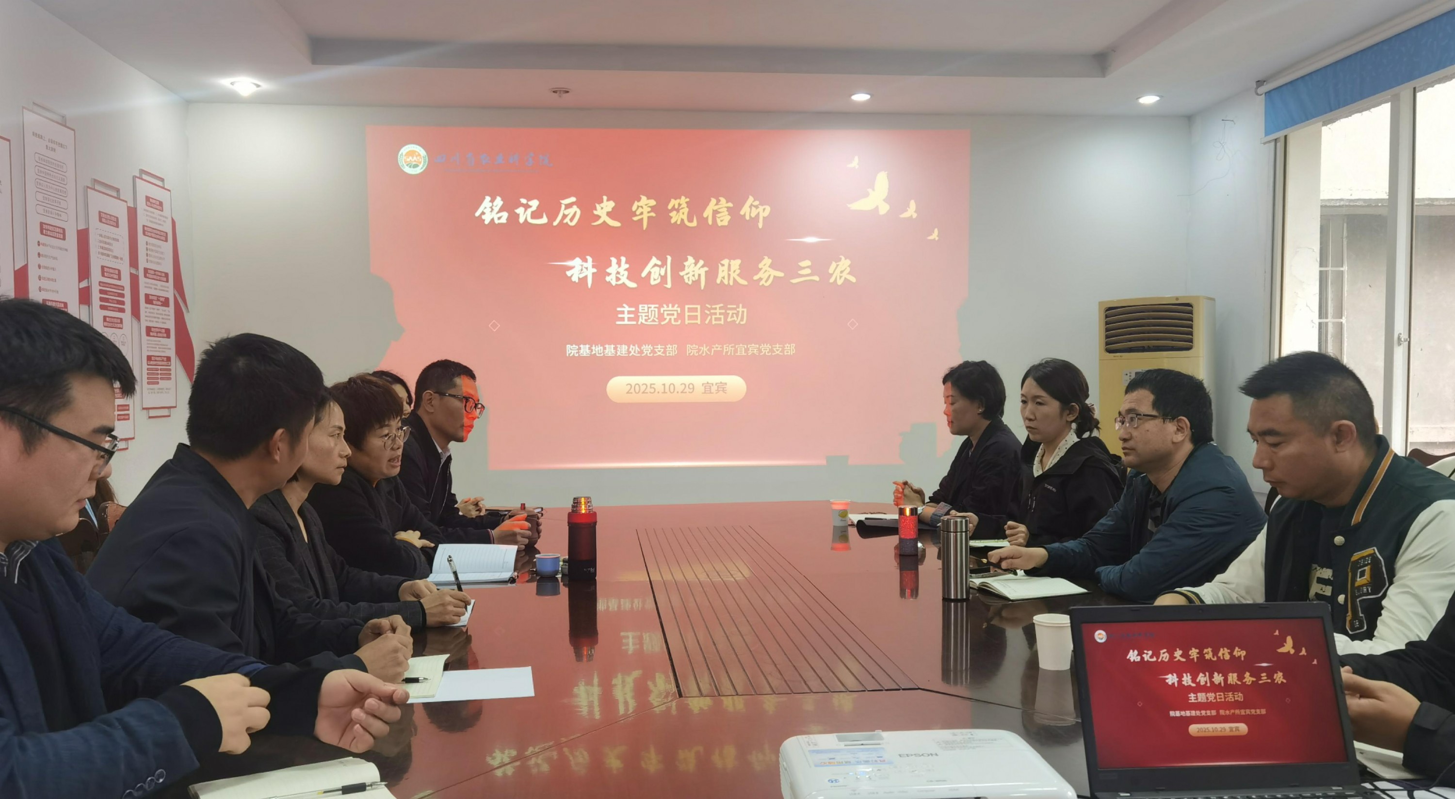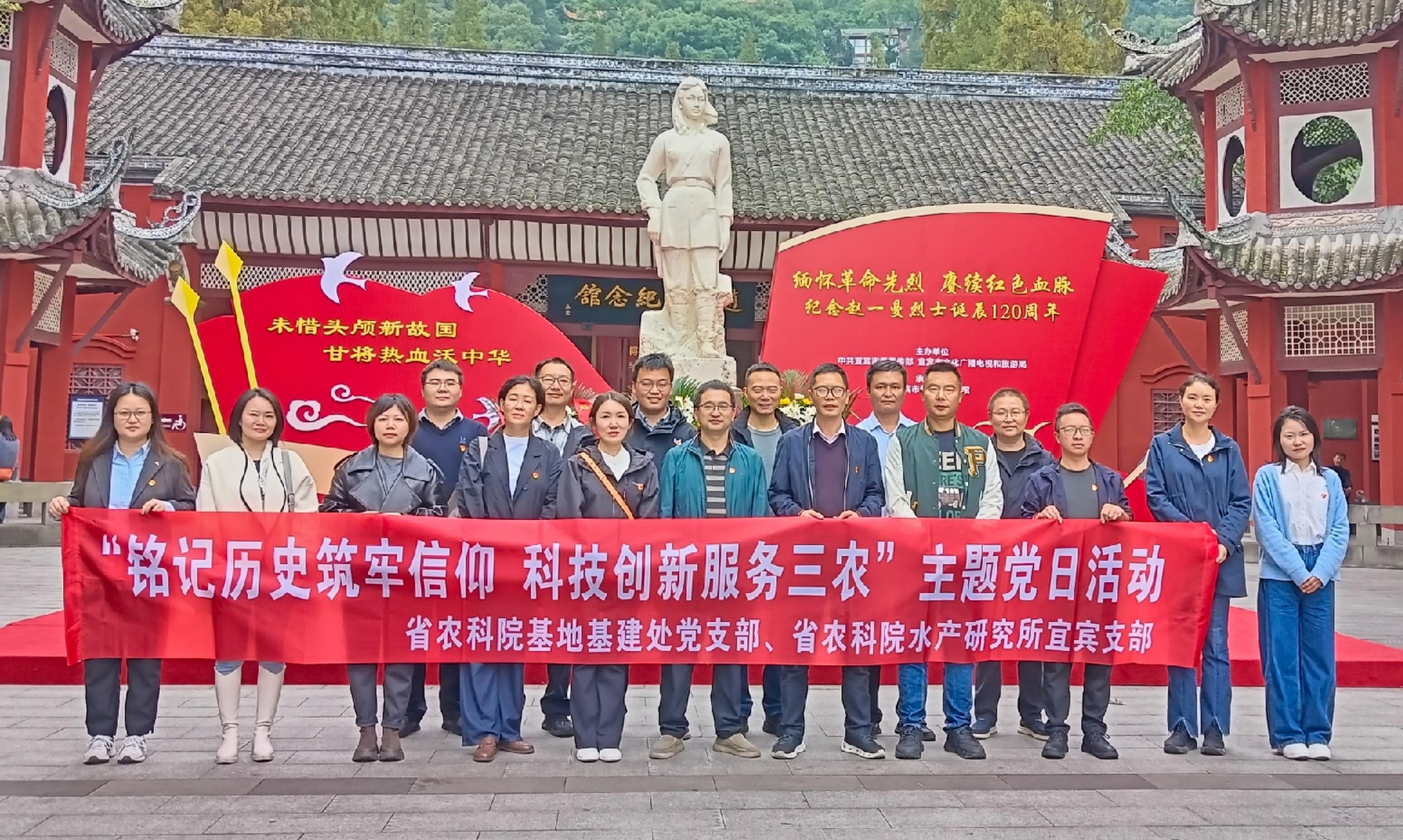 为深入学习贯彻习近平新时代中国特色社会主义思想,加强党建学习与业务工作融合发展,10月28日,院基地基建处党支部、院水产所宜宾党支部围绕“铭记历史筑牢信仰,科技创新服务三农”主题,联合开展主题党日活动。