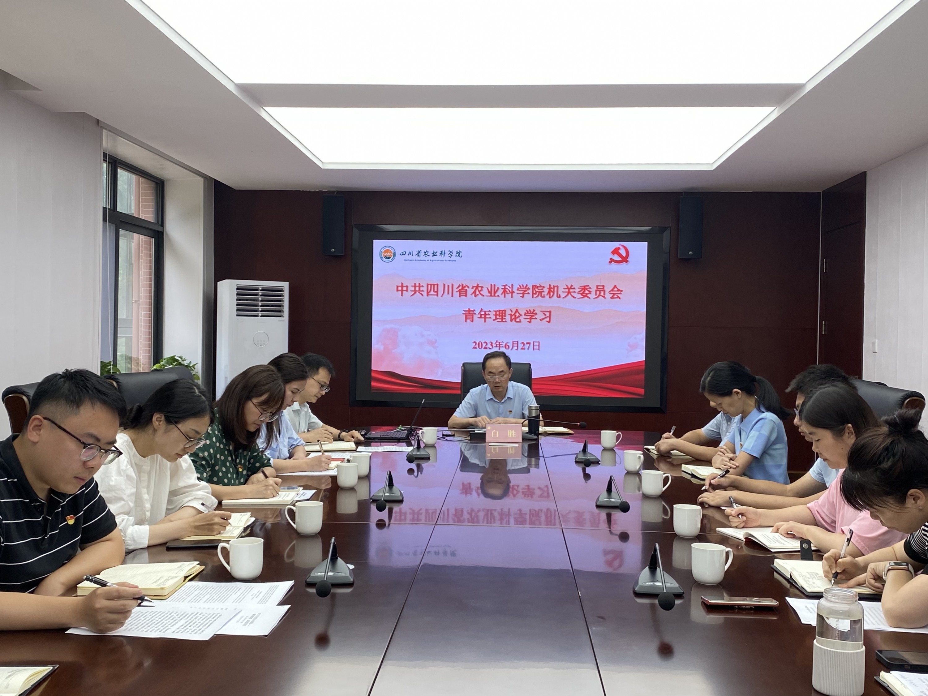 为深入开展学习贯彻习近平新时代中国特色社会主义思想主题教育,引导青年党员干部持续深化理论学习,激发干事创业热情,6月27日,院机关青年理论学习小组在院机关二楼会议室召开青年理论学习交流会。院机关党委专职副书记白胜主持会议,院机关青年理论学习小组成员共计20余人参会。