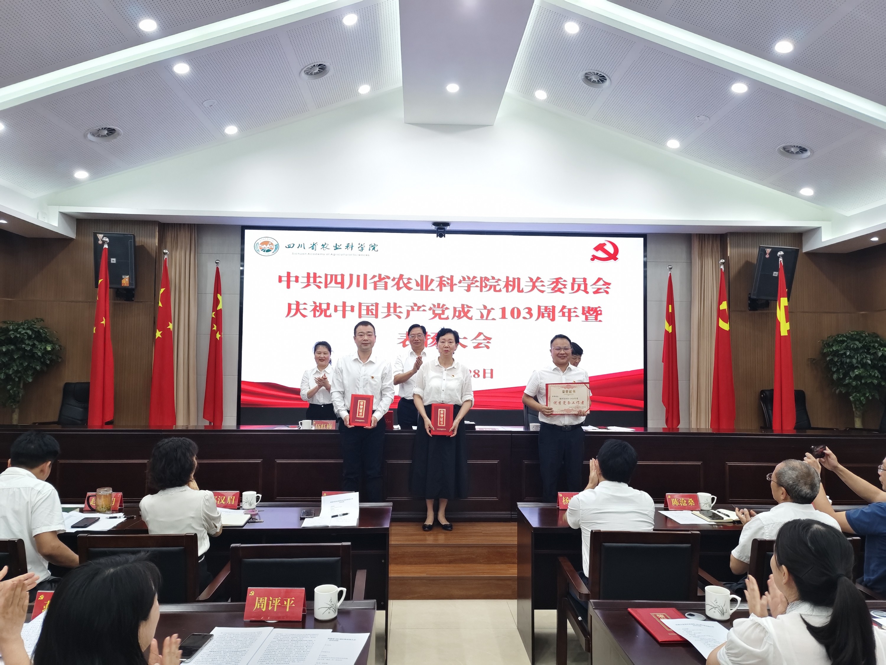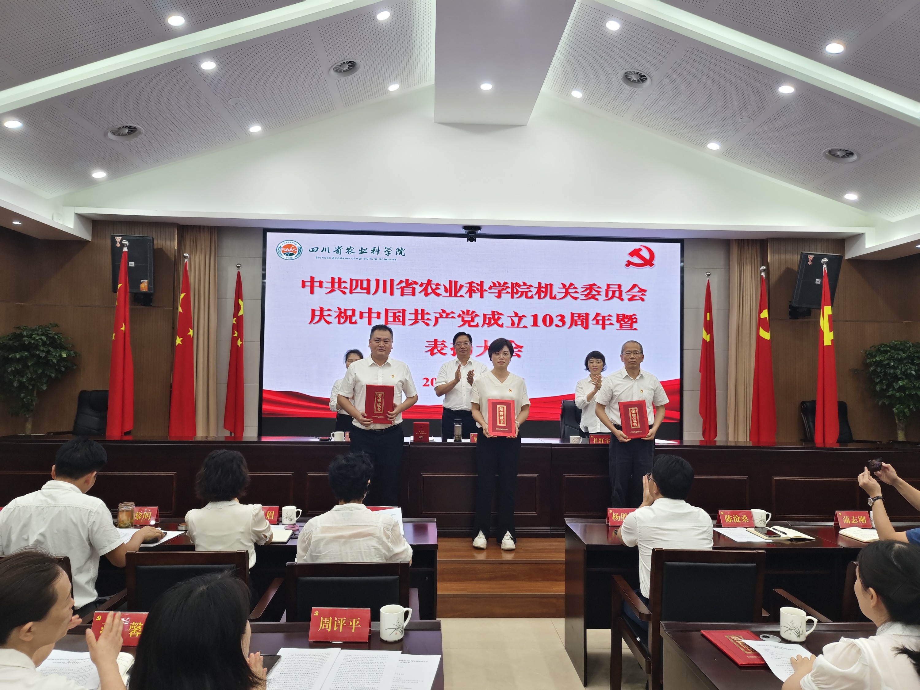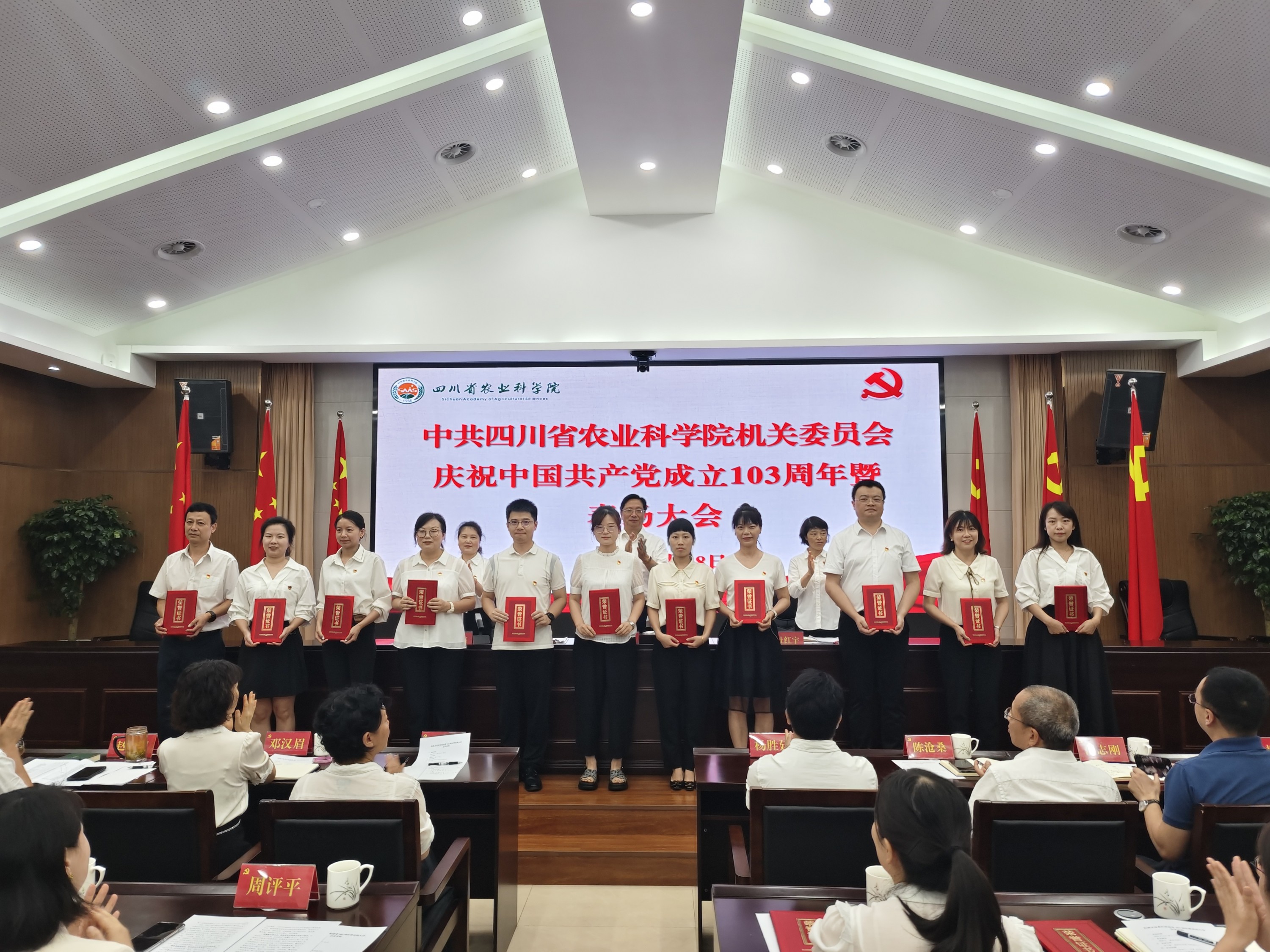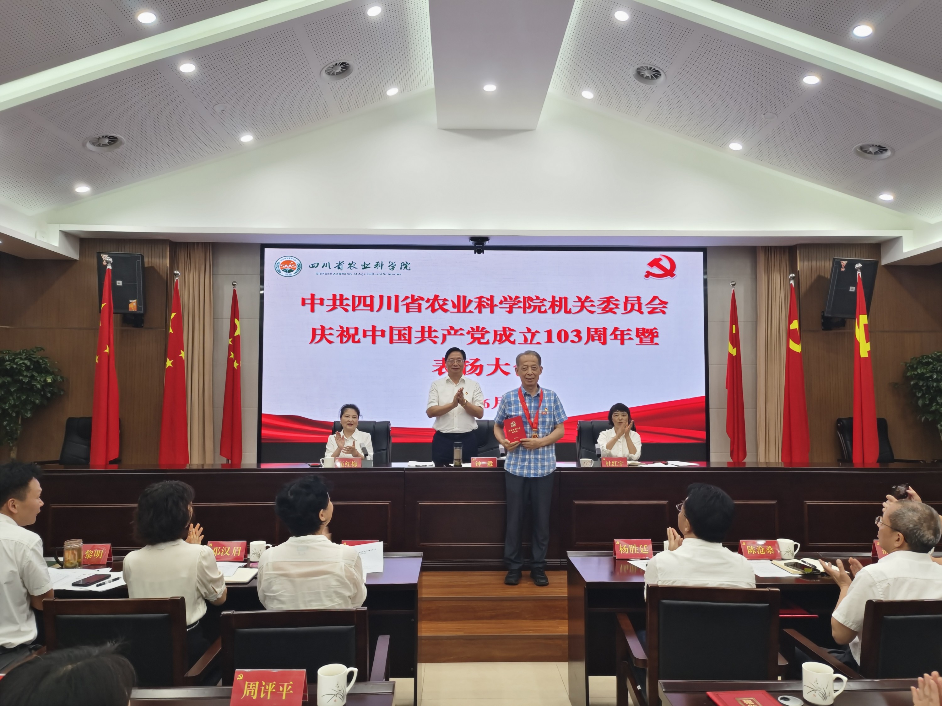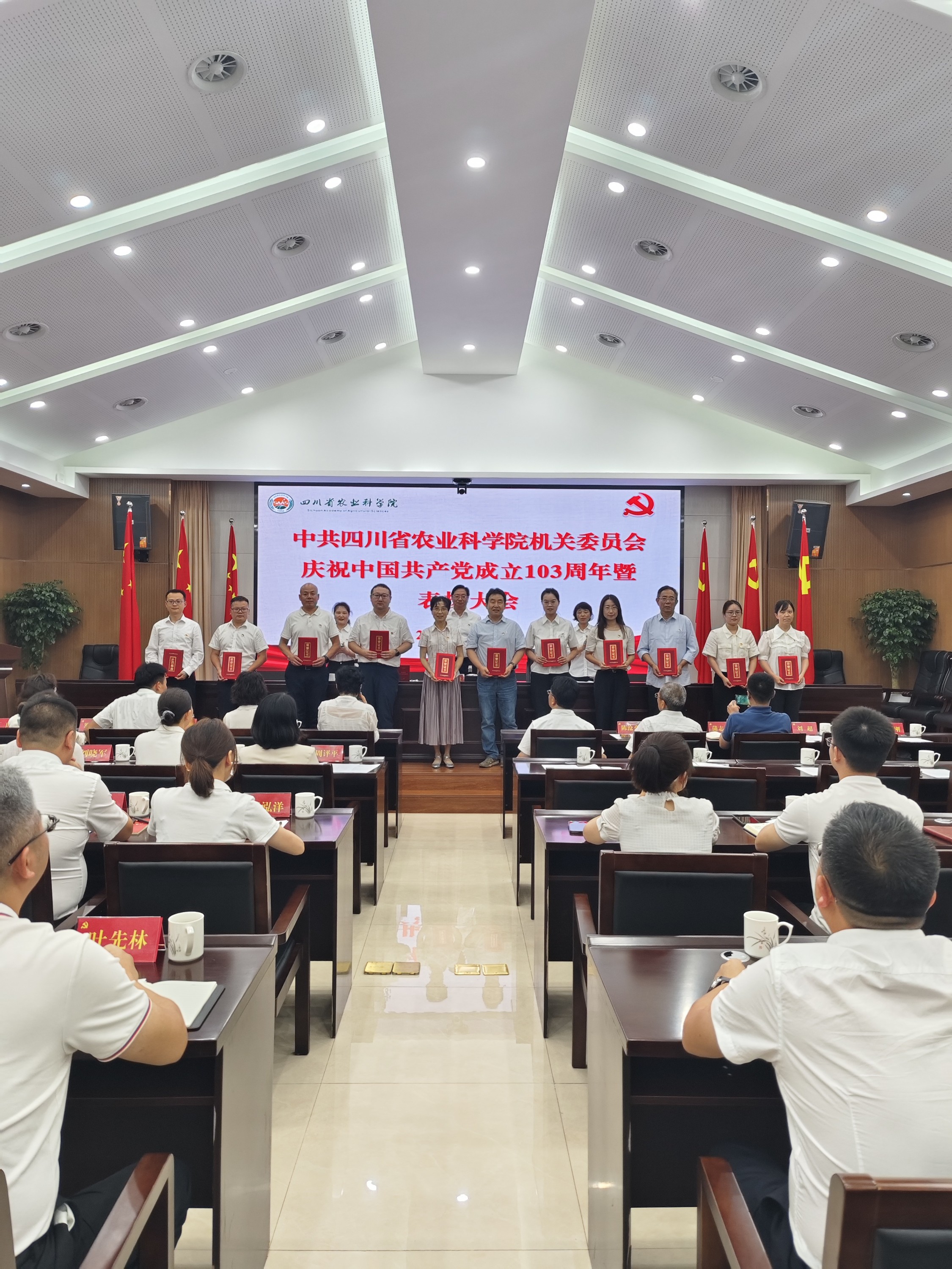 为庆祝中国共产党成立103周年,大力弘扬崇尚先进、争当先锋的良好风尚,激励党员率先垂范、担当作为,6月28日,院机关党委召开庆祝中国共产党成立103周年暨表扬大会,表扬2023—2024年度优秀共产党员、优秀党务工作者和先进基层党组织,转颁“光荣在党50周年”纪念章。院党委副书记、院机关党委书记钟毅出席会议并讲话。院机关党委副书记、院党委办主任杜红宇,院机关各处(室)主要负责人及全体党员干部参加会议。会议由院机关党委专职副书记伍红梅主持。