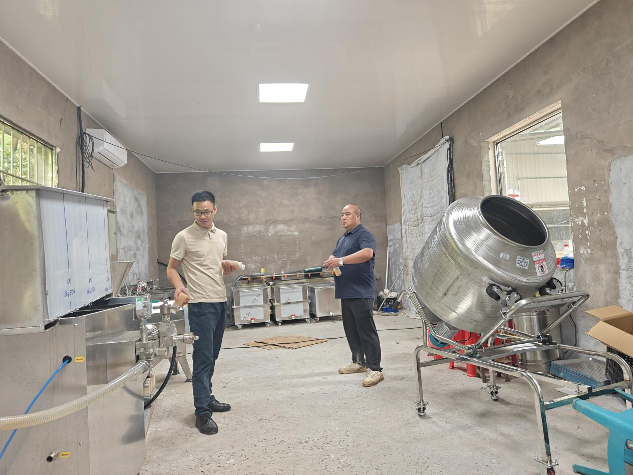 9月10日当天,在先锋村驻村第一书记潘翠萍、平昌县绿怡园农业发展有限公司负责人罗东明的共同陪同下,李可先后深入澌岸镇桃特色产业园区、桃精深加工工厂开展实地参观调研。调研过程中,罗东明详细介绍了当地桃产业的发展现状,同时重点说明了精深加工厂房的建设进度、设备采购规划及当前遇到的技术瓶颈。针对企业面临的实际难题,李可在实地查看生产线布局、设备安装情况后,从设备选型、厂房布局规划等方面专业角度给出了专业指导,同时,对罗东明重点关注的桃加工产品灭菌不彻底、储存过程中易变色等核心问题,李可从灭菌方式、抗氧化剂合理添加等方面进行讲解,决了困扰企业许久的技术难题,为企业顺利推进精深加工项目吃下 “定心丸”。在助力企业发展的同时,李可还与驻村第一书记潘翠萍围绕驻村帮扶工作开展探讨。围绕潘翠萍希望依托当地丰富的金银花资源,通过发展精深加工产业拓宽村民增收渠道的需求。李可向潘翠萍介绍了目前团队在金银花精深加工方面的工作进展,并表示将持续发挥团队力量,为先锋村金银花加工提供技术支持,推动形成 “种植 + 加工 + 销售” 的完整产业链,助力乡村产业振兴与村民稳定增收。