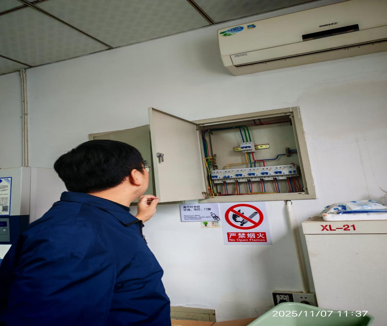 为贯彻落实院2025年度消防安全和应急能力提升培训会精神和所消防安全工作会精神,11月7日正值立冬时节,加工所后勤服务中心工作人员在分管所领导所党委委员、副所长李治华的带领下组织开展了全所冬季防火安全专项检查。