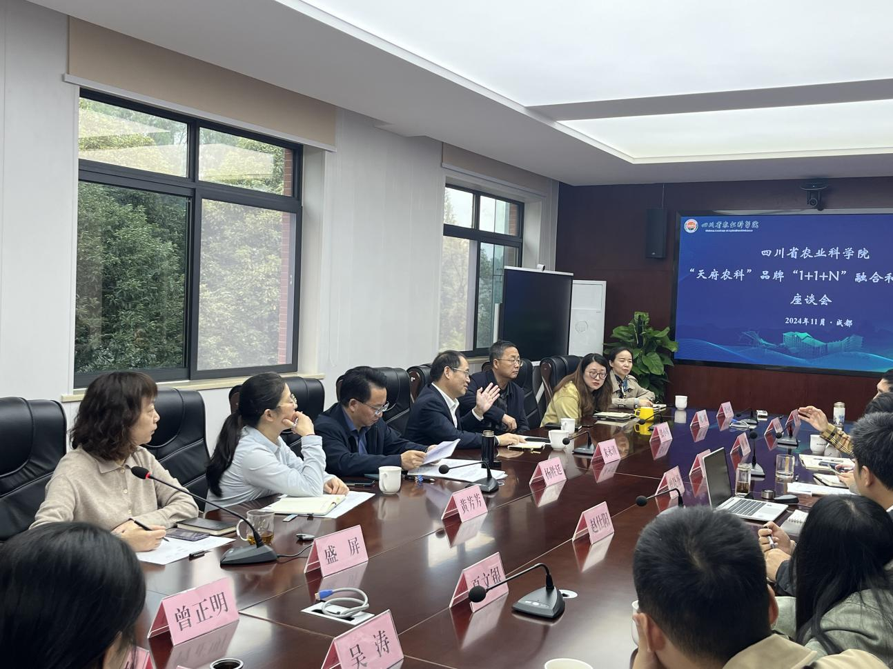 为加速推进我院农业科技产业转型升级,加快推动“天府农科”品牌建设工作,促进天府农科“1+1+N”有机融合发展,11月8日,院产业资产处组织召开“天府农科”品牌“1+1+N”融合和协同发展座谈会。院产业资产处、院加工所、院科保中心、院水稻高粱所、院经作所、院蚕业所、院天府农科品牌运营管理中心相关领导、管理人员及工作人员近20人参会。会议由院产业资产处副处长盛屏主持。