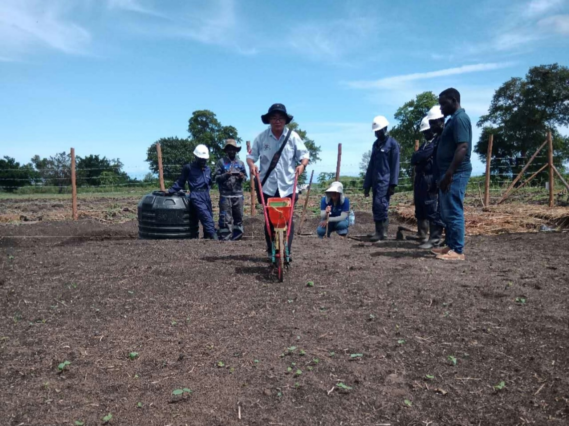 当天,团队携带辣椒、水稻示范种抵达中海油乌干达油区生计恢复农业项目示范基地,详细规划了基地建设方案,现场示范并培训整地、苗床管理、播种密度把控、水分管理等关键技术要点,同时对基地土壤状况进行初步测定,为提升当地粮食自给能力、改善油区农户生计提供了科技支撑。