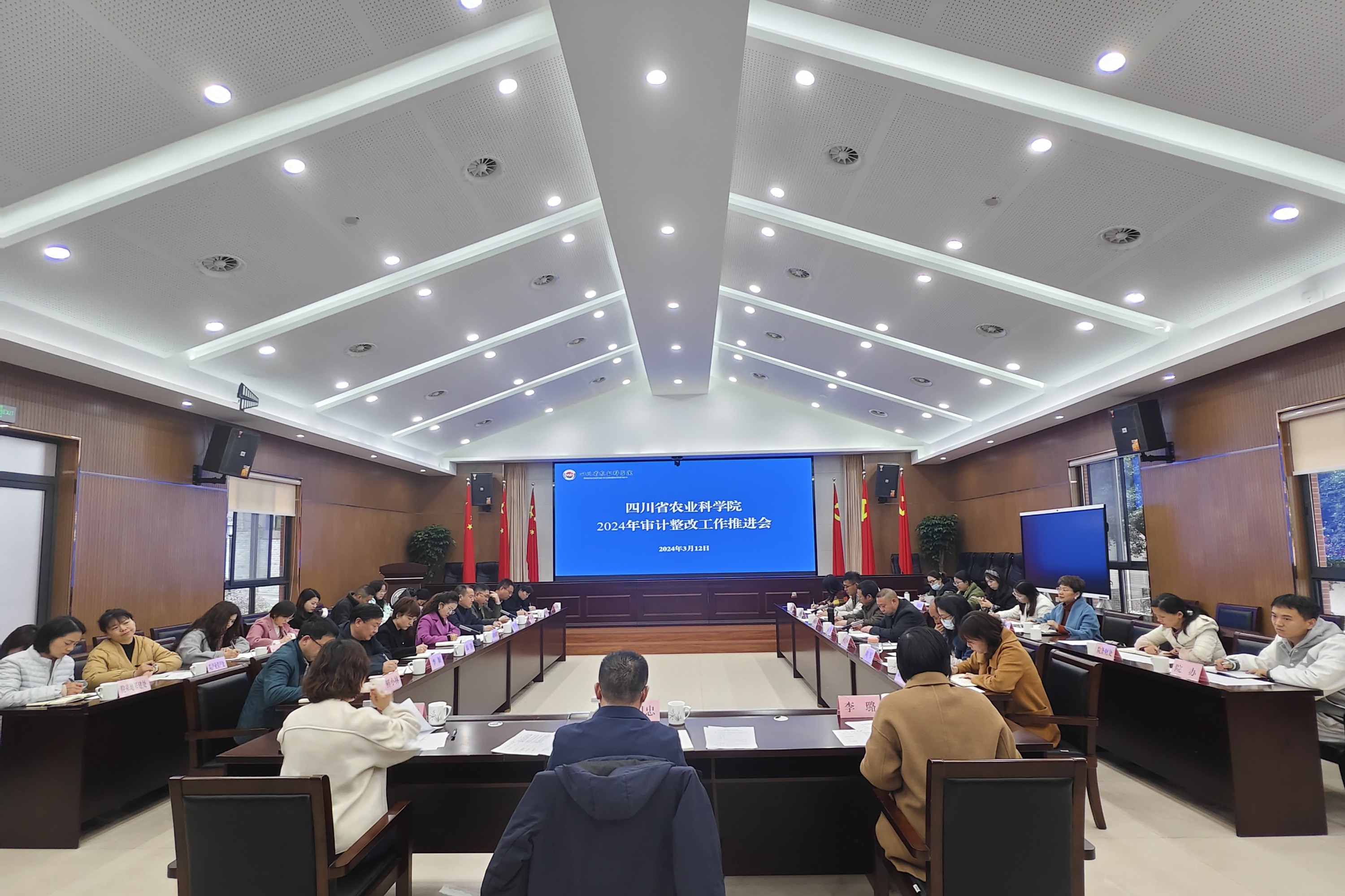 为更好推动落实我院审计整改工作,3月12日院2024年审计整改工作推进会在院机关一楼会议厅顺利召开。会议由院法规审计处处长邓汉眉主持,院党委委员、副院长丁明忠出席会议并讲话。涉及审计整改事项的机关部门、院属单位主要负责人和牵头审计整改工作的科室负责人,院法规审计处全体人员30余人参加会议。