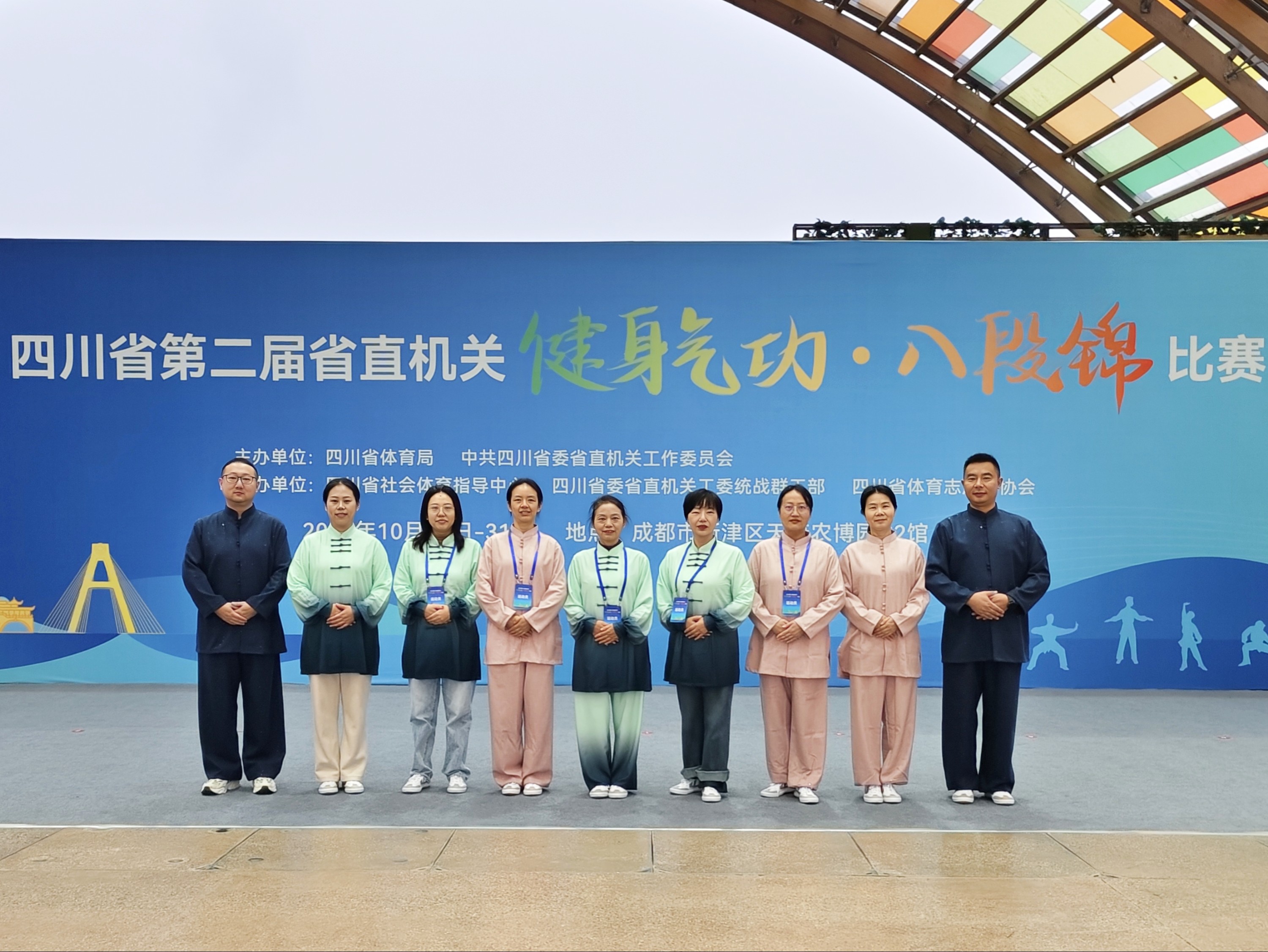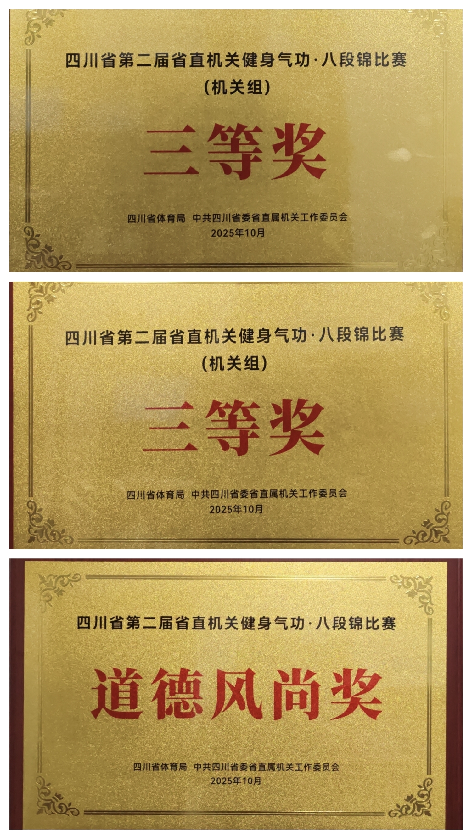 2025年10月31日,四川省第二届省直机关工委健身气功・八段锦比赛在天府农博园圆满落幕。我院派出两支代表队,凭借整齐划一的动作、气韵绵长的表现,省农科院一队、二队荣获机关组三等奖,同时省农科院一队还荣获道德风尚奖。