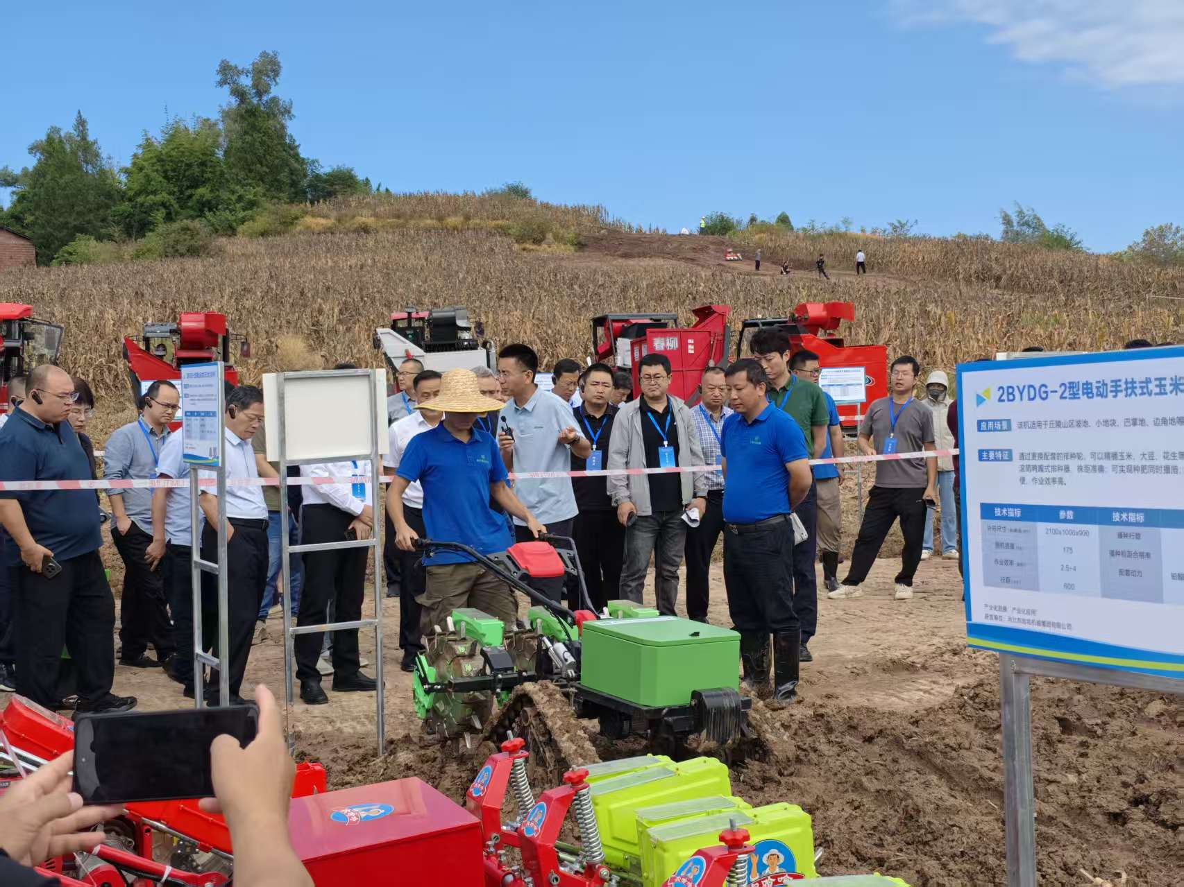 四川省农业机械科学研究院水稻、玉米、中药材等研究团队携装备助力本次现场会。我院研发的梯台田深泥脚乘坐式轻简型插秧机、丹参收获机、麦冬收获机、苎麻收割打剥一体机在达州市达川区丘陵山区现代农机装备产业园进行了静态展示,玉米旋耕播种机、玉米电动播种机和丹参移栽机等在渠县贵福镇进行了田间动态演示。亮相本次会议的装备主要是为解决丘陵山区“无机可用、有机难用”难题而研发,具有机动灵活、适应性强、作业效率高等特点,受到了与会嘉宾的广泛肯定。