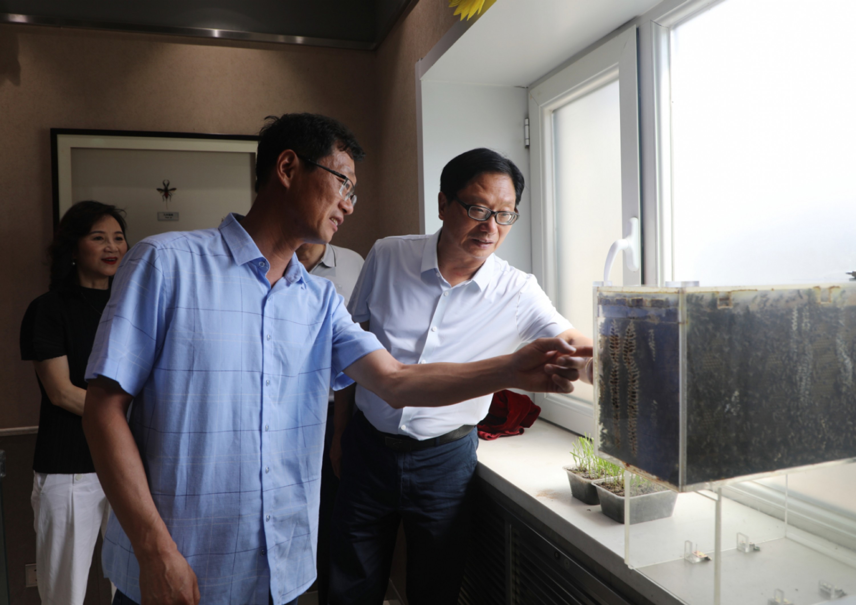 宁夏院党组书记罗成虎,院党组副书记、院长刘长青亲切会见了钟毅一行,并率院党组副书记赵兵,院党组成员、副院长田建文等全程陪同钟毅先后参观了院职工之家、党员学习室、宁夏昆虫馆、枸杞所以及园艺所科研基地。