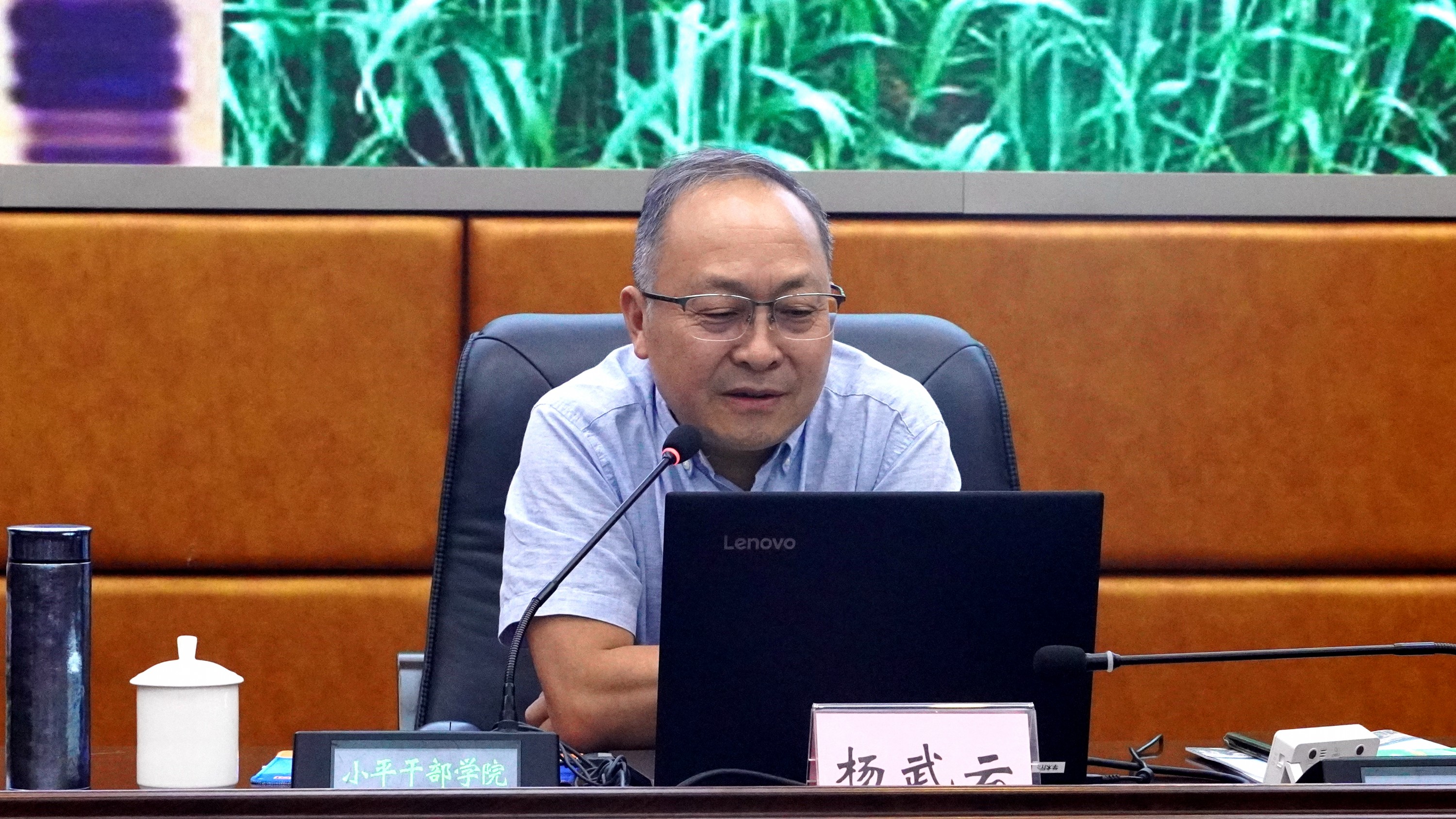 杨武云以《农业科技创新》为题,从科技创新、科学与技术创新实践、把握国际发展潮流和加强合作等方面为大家作了一场系统辅导。杨武云以自身求学、工作等心路历程,以及成长足迹等方面,勉励大家要以科学的态度对待科学,以真理的精神追求真理,做好新时代的农业科技创新工作,为我们加强基础研究、注重原始创新,不断向科学技术广度和深度进军作了具体指导。