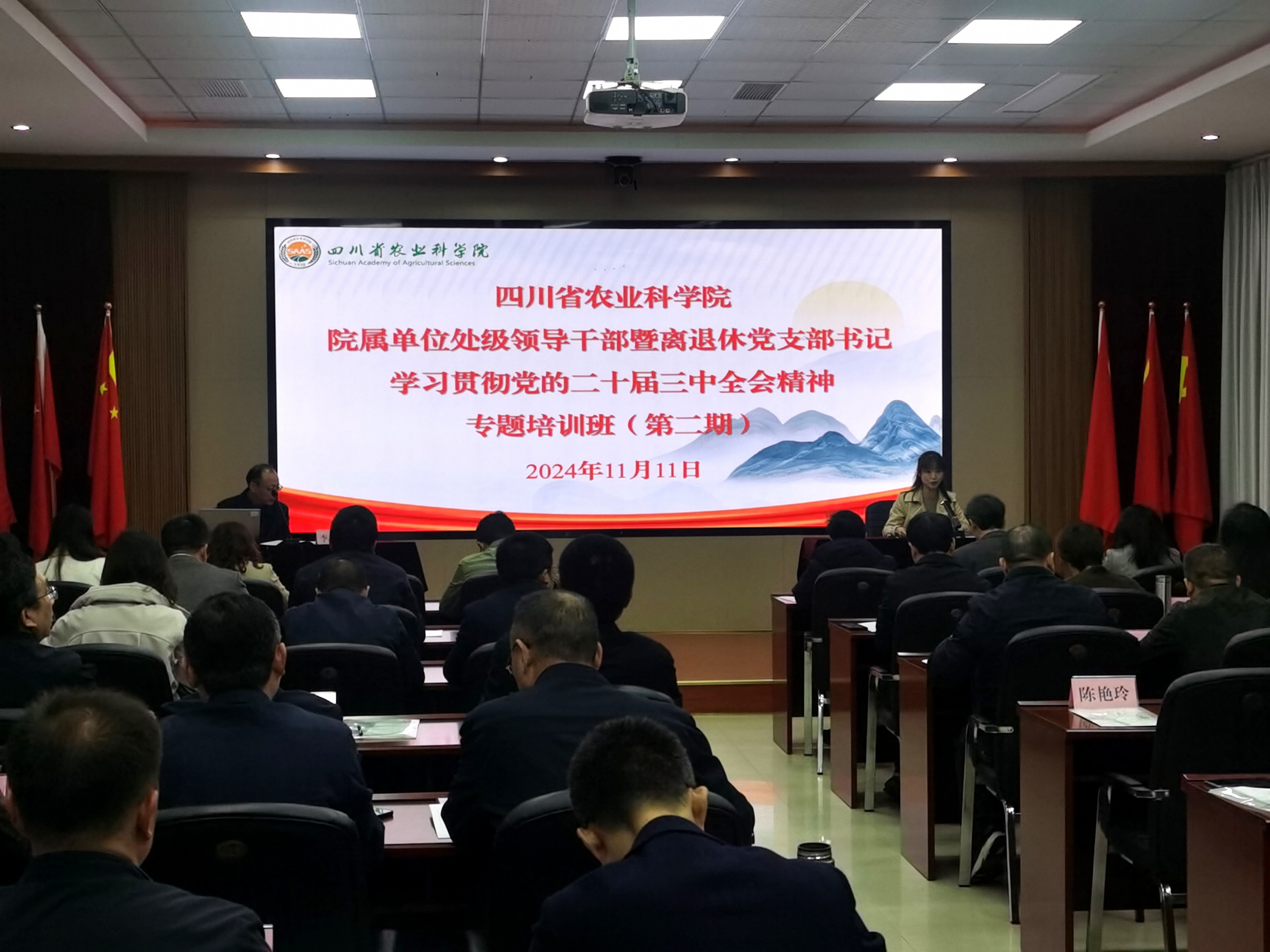 11月11日上午,四川省农业科学院院属单位处级领导干部暨离退休党支部书记学习贯彻党的二十届三中全会精神专题培训班(第二期)在院作物所品资楼二楼学术报告厅正式开班。院属各单位47名处级领导干部参加第二期培训。本次专题培训班旨在深入学习贯彻党的二十届三中全会精神,推动机关党的建设高质量发展,切实提升处级领导干部履职能力。通过三天高密度、大容量的集中学习培训,领导干部们深入理解了全会精神的深邃内涵,准确把握了党中央对科技创新的新战略部署新要求,并进一步强化了国家战略科技力量的使命定位。
