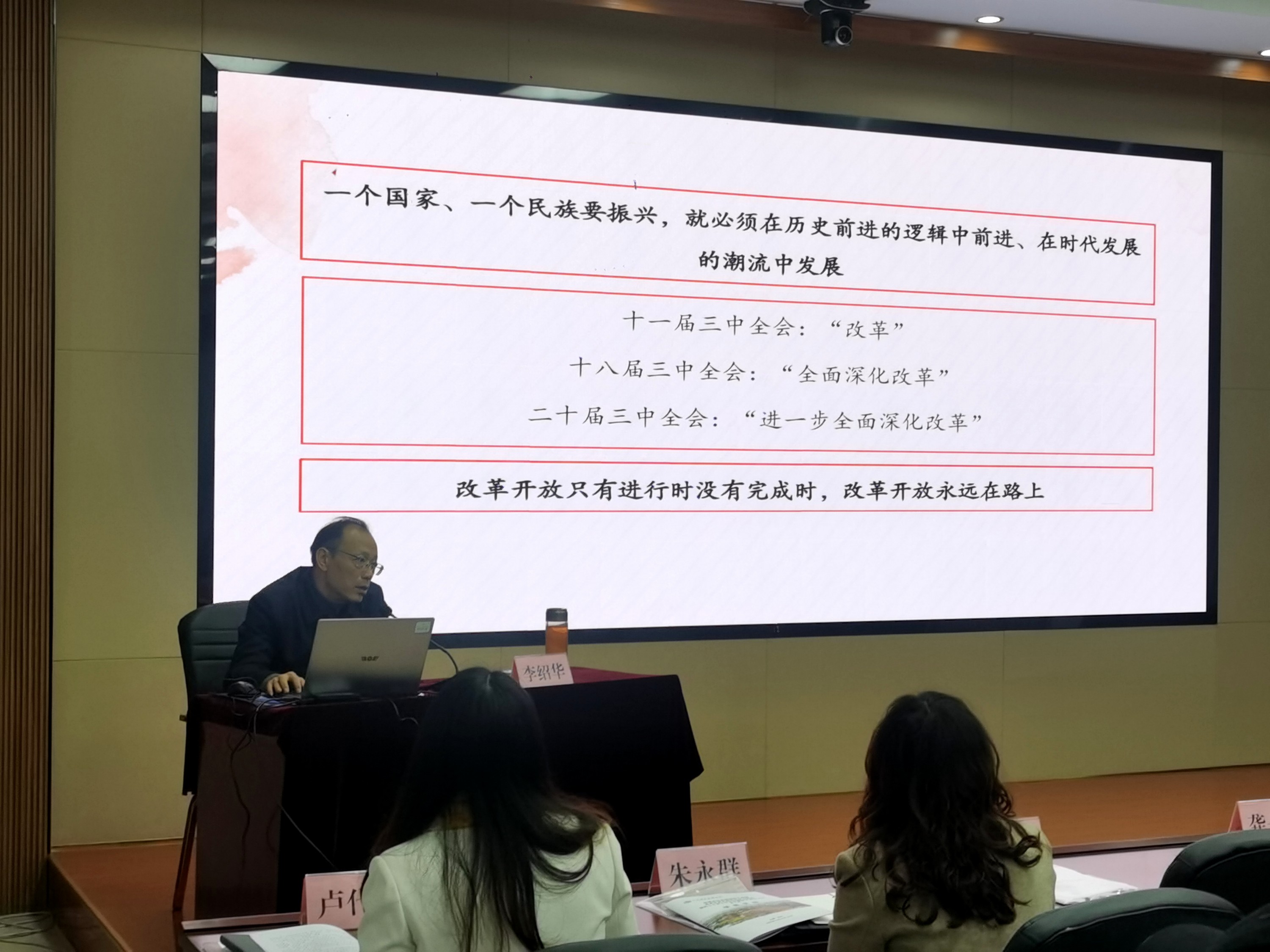 本次培训于11月11日-13日,以线下集中授课的方式进行,邀请了中共四川省委省直机关党校相关领导、教授进行授课。课程内容主要围绕党的二十届三中全会精神解读,新时代全面深化改革的重大成就及进一步全面深化改革总目标与原则等开展。3天培训中,陈学明副校长授课《进一步全面深化改革、推进中国式现代化的重大意义和总体要求》、李绍华教授授课《学习领会习近平总书记关于全面深化改革的一系列新思想、新观点、新论断》、马国祥教授授课《聚焦提高党的建设制度改革推动机关党建高质量发展》、江国才副教授授课《聚焦建设美丽中国》、周红芳副教授授课《省委十二届六次全会精神解读》、吉媛副教授授课《聚焦构建高水平社会主义市场经济体制》。通过系统的培训,参训学员对全面深化改革的重大意义有了更深刻的理解和把握,同时,进一步理清了工作思路、激发了工作动力。