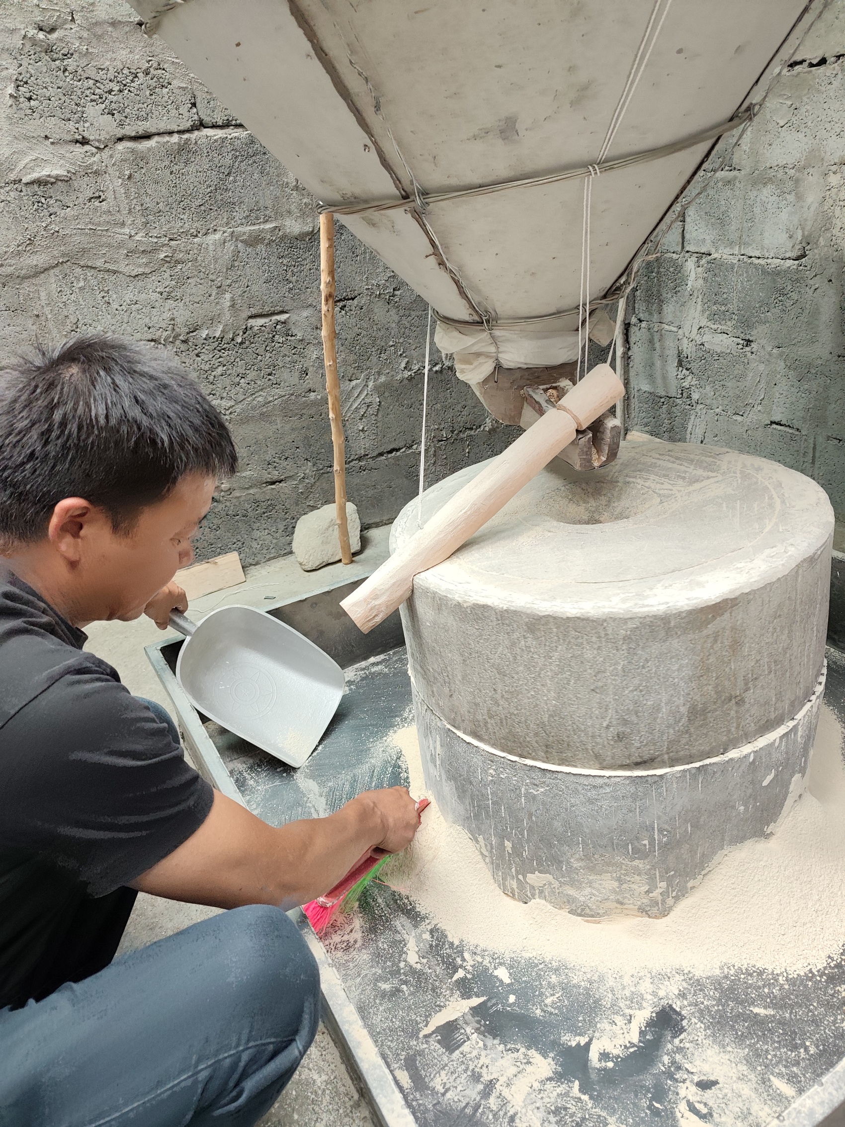9月18日,在九龙县三岩龙乡白杨坪村的一间水磨房,一批炒熟的天须籽粒正在这里碾磨成粉,满屋生香。
