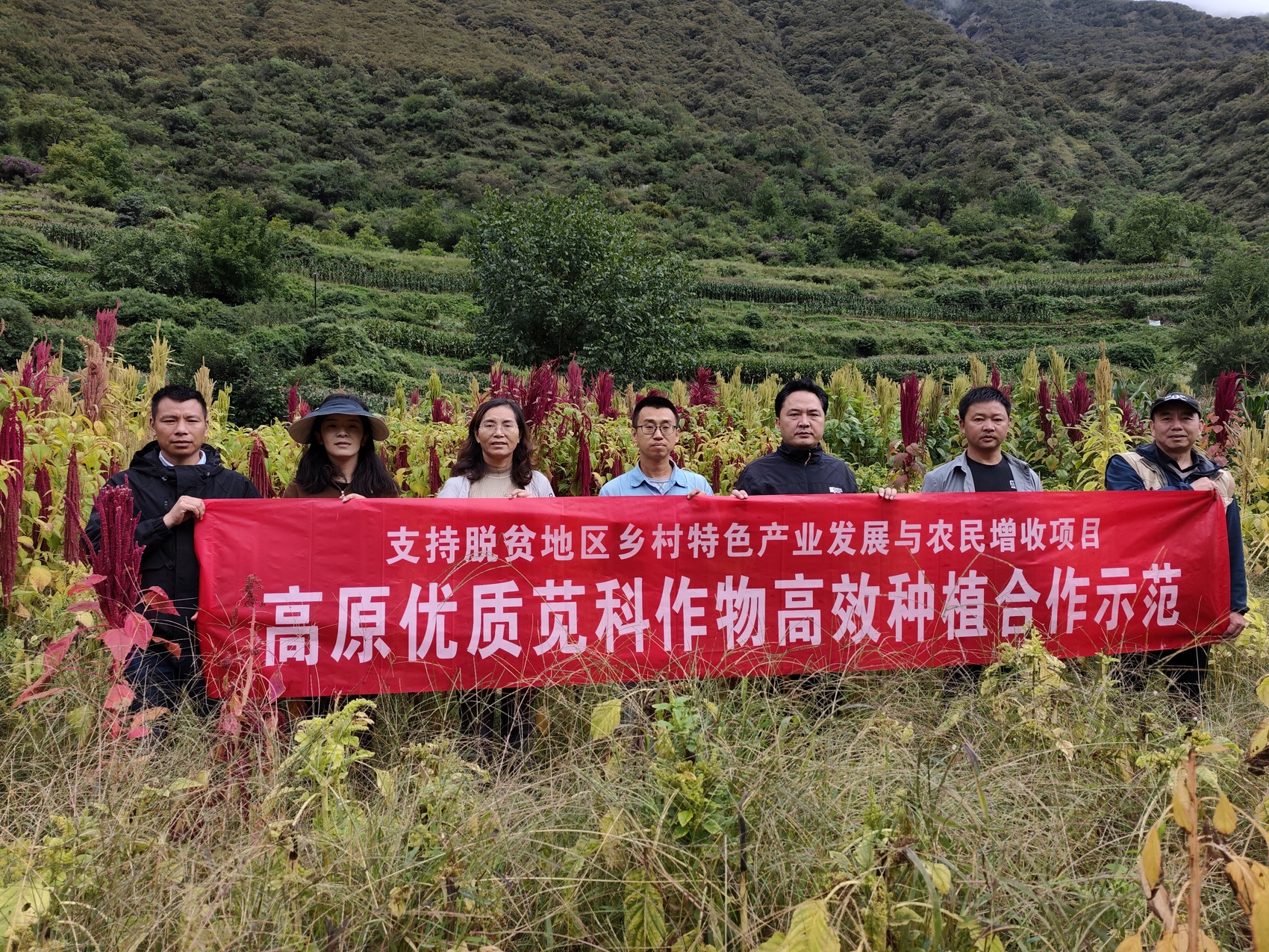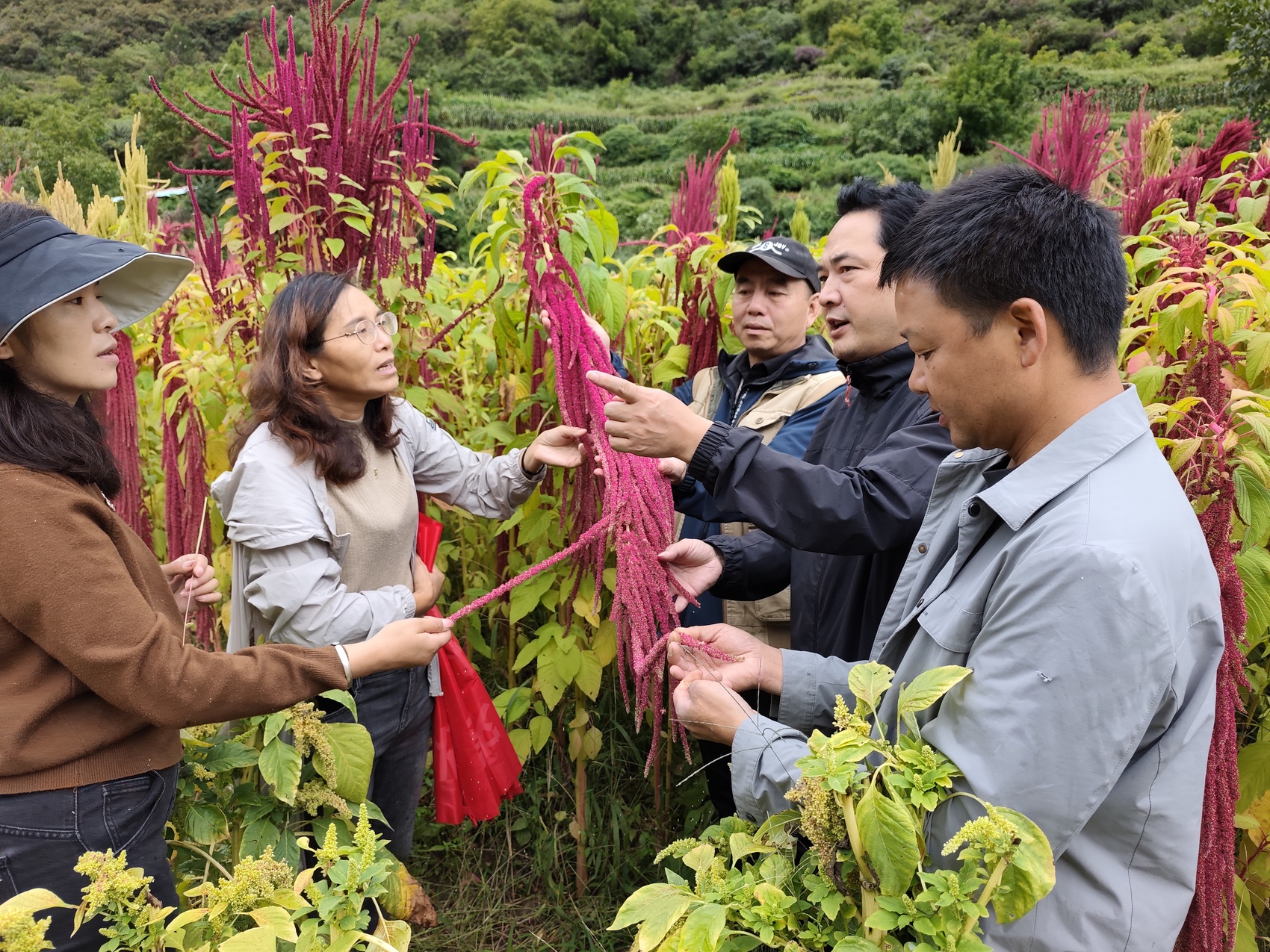 “天须在世界各地广有种植,但知晓的消费者并不多。它是苋科作物,似谷非谷,即通常所说的假谷物,可当杂粮食用。而且,它的蛋白质含量高、微量元素丰富并且含量高,延缓衰老的黄酮类化合物以及膳食纤维含量也比较高,适合开发成健康营养食品、产业化发展。”四川省农业科学院生物技术核技术研究所作物诱变育种研究中心主任蒋云说,“去年开始,为了支持脱贫地区乡村特色产业发展与农民增收,我们课题组开展高原苋科作物高效种植合作示范项目,从全国各地收集天须种子,并于去年9月在三岩龙乡开展调研,发现这里红籽粒的天须非常有特色,但是长势不整齐、纯度不高,而黑籽粒的天须也存在纯度不够的问题。”
