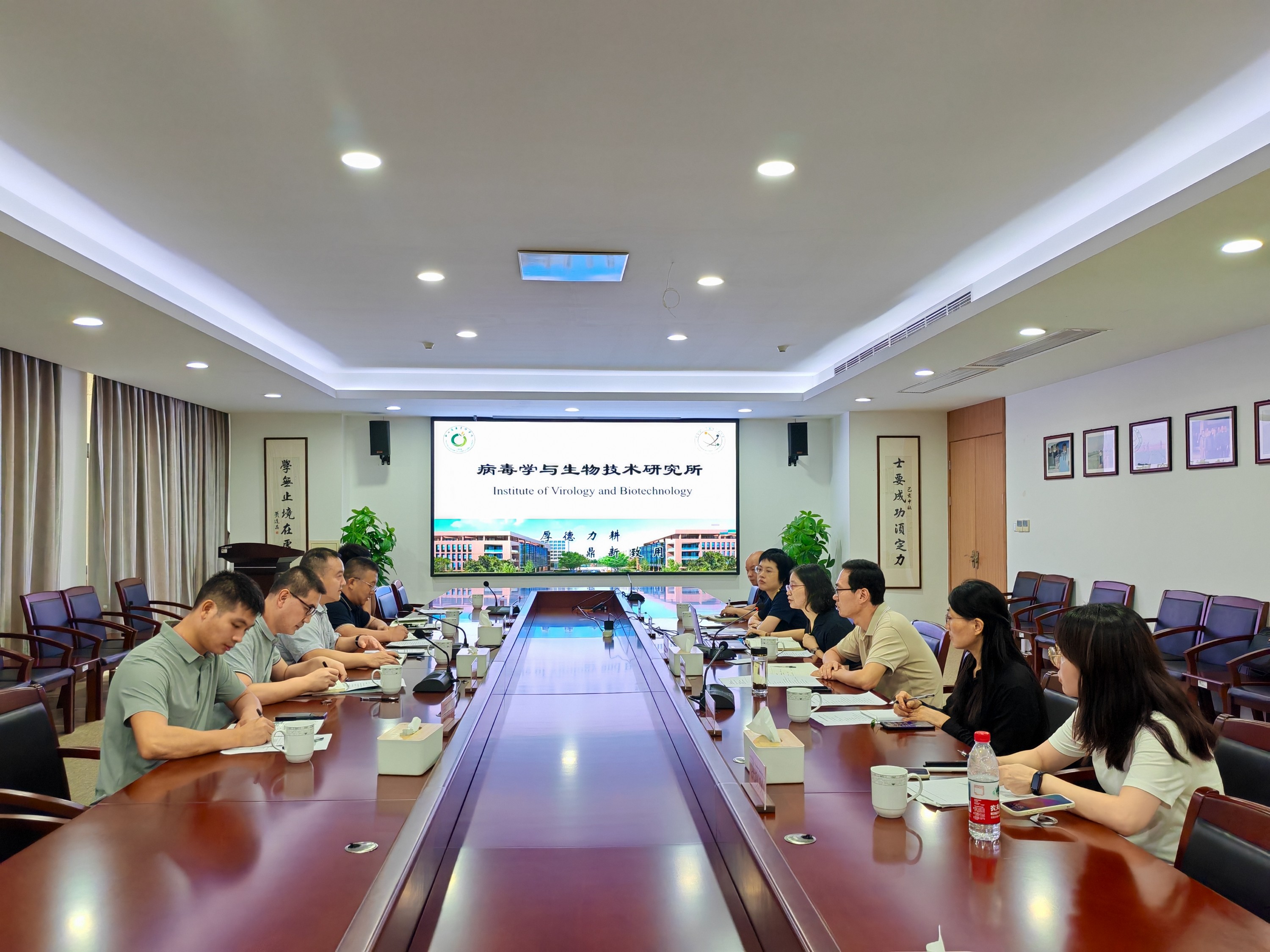 在浙江省农科院病毒学与生物技术研究所,朱英所长对单位的职能定位、研究方向特色、科研平台、重要成果等方面进行了详细介绍,牛晓伟书记、洪高洁副所长分别介绍了成果转化、科技创新等方面的现状及经验。双方重点围绕科技创新发展规划、创新激励机制、成果转化模式与绩效评价、服务产业发展等进行了深入探讨。