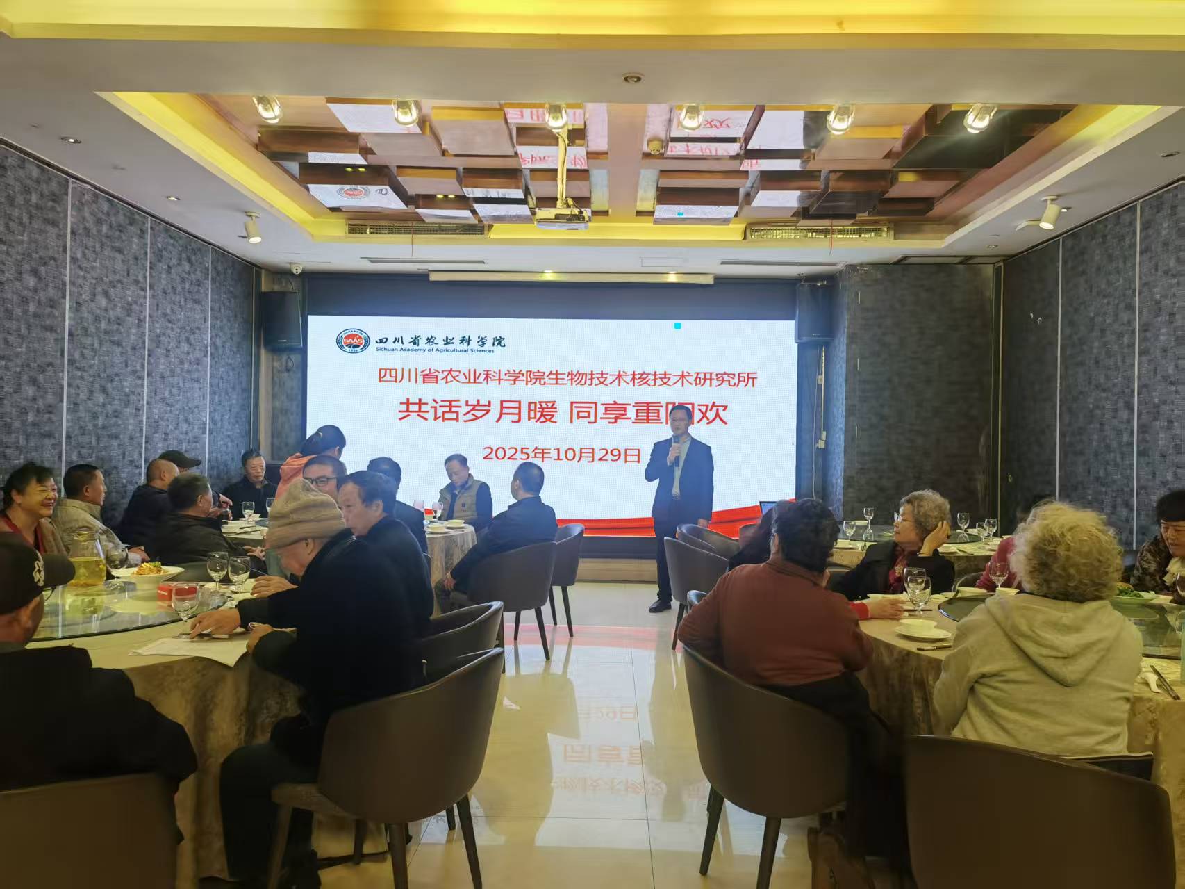 菊香满径,佳节情浓 。2025年10月29日,院生核所隆重举办“共话岁月暖 同享重阳欢”重阳节活动。全所30余名退休老同志满怀喜悦欢聚一堂,在欢声笑语中共庆重阳佳节。所党委书记魏鹏带领全体在家所领导亲临现场,与老同志们温情相聚。