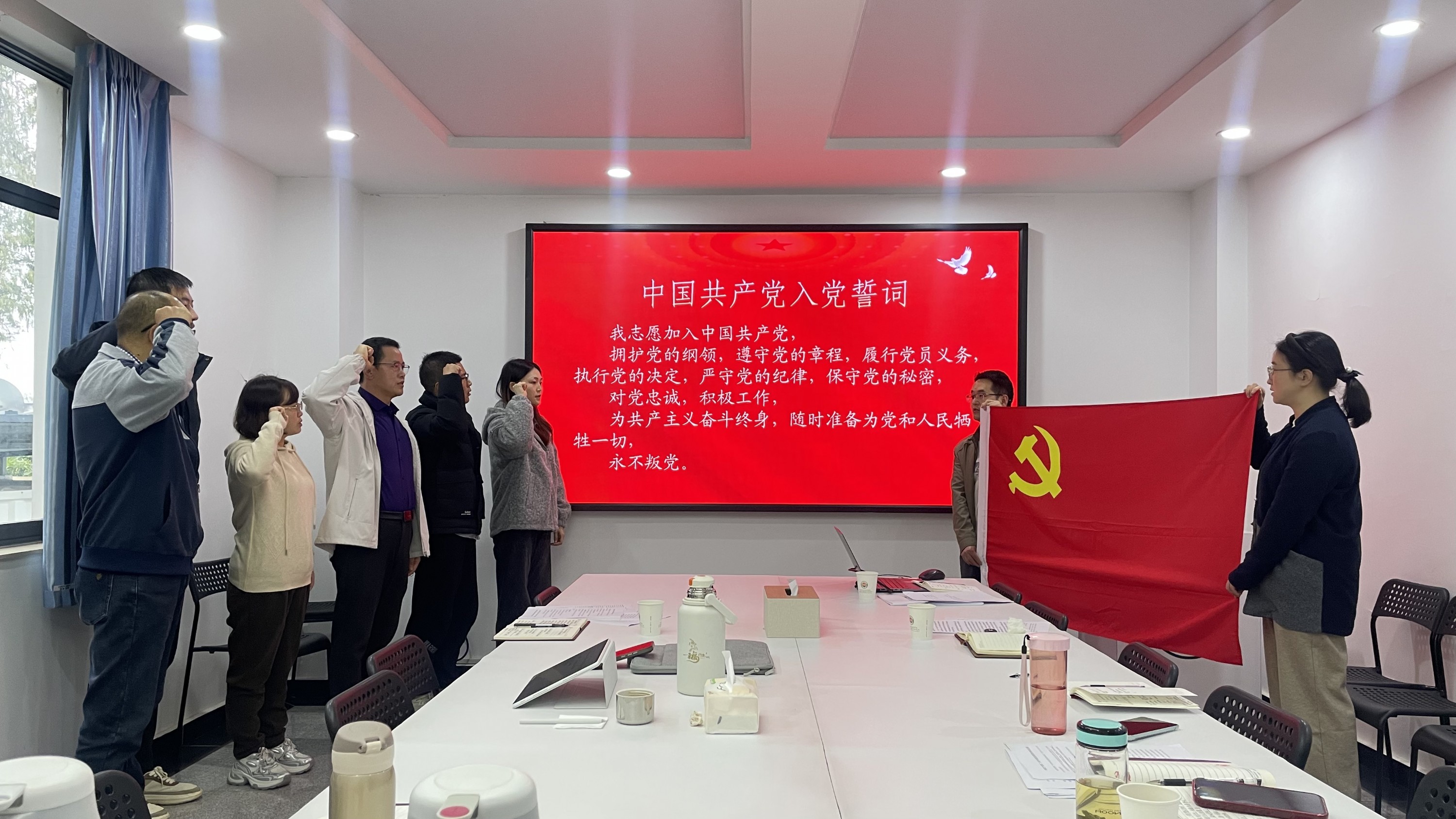 在杨云月同志预备党员转正议程中,会议充分讨论,进行无记名投票表决,一致同意其按期转为中共正式党员。杨云月同志表态发言,承诺将在科研岗位上坚定理想信念,不断提升政治思想认识水平和综合能力,干出切切实实工作成效,努力践行“把科技论文写在祖国大地上”的使命担当。杨云月同志进行了入党宣誓,全体党员重温入党誓词。