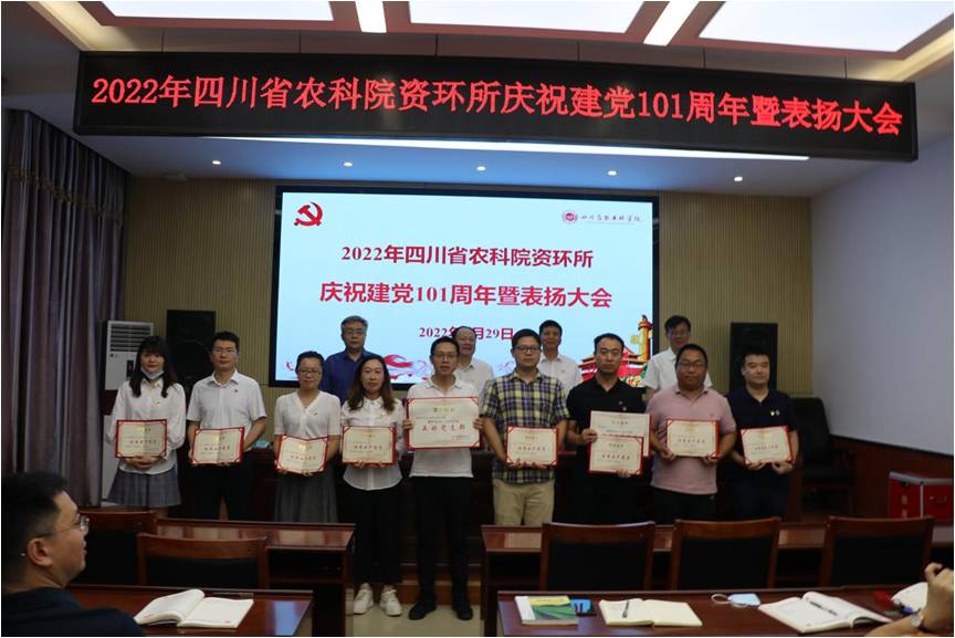 会上,蒋浩宏宣读了资环所党委关于表扬2021年度“五好党支部”、优秀共产党员和优秀党务工作者的决定,土壤与节水支部获所“五好党支部”称号,陈琨获所优秀党务工作者称号,朱永群、王谢等8名同志获所优秀共产党员称号。所领导为所优秀党务工作者和所优秀共产党员颁发了荣誉证书,并对获表扬的支部和个人表达了热烈的祝贺。