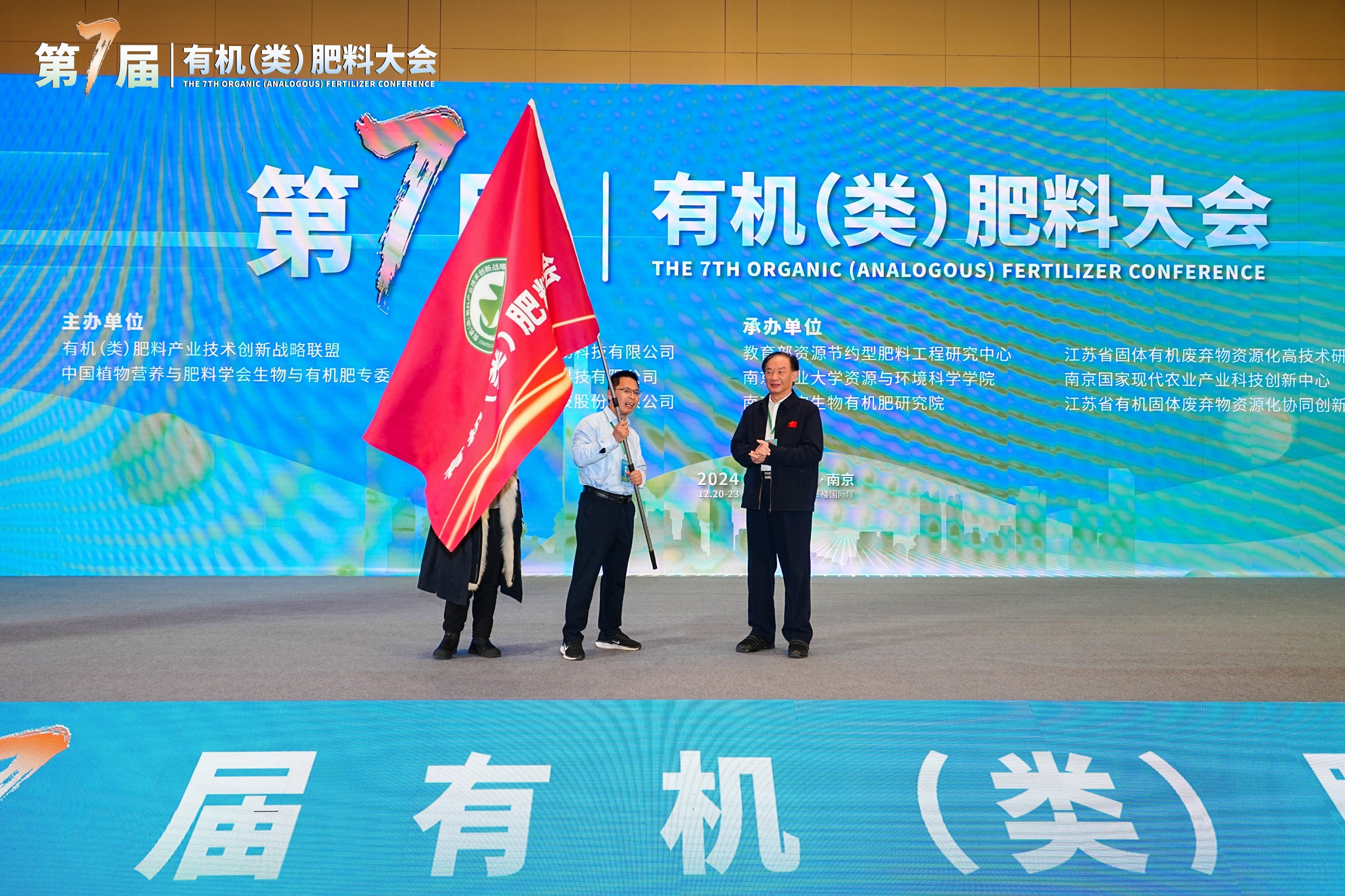 院资环所曾祥忠副研究员、罗兴博士应邀参加了此次大会。曾祥忠副研究员根据大会安排做了题为“四川有机肥料产业发展现状、存在问题与未来展望”主题报告;并代表四川省有机肥料产业发展促进会从有机(类)肥料产业技术创新战略联盟理事长沈其荣院士手中接过了会旗,商定于2026年在成都举办第八届有机(类)肥料大会。希望以我省被确定为国家战略腹地为契机,从“变废为宝•沃土兴农”、助力打造更高水平的天府粮仓实践出发,借战略联盟专家团队和全国业界同仁朋友技术东风,推动全省有机肥料产业进一步走向绿色、低碳、高质量、可持续发展道路。
