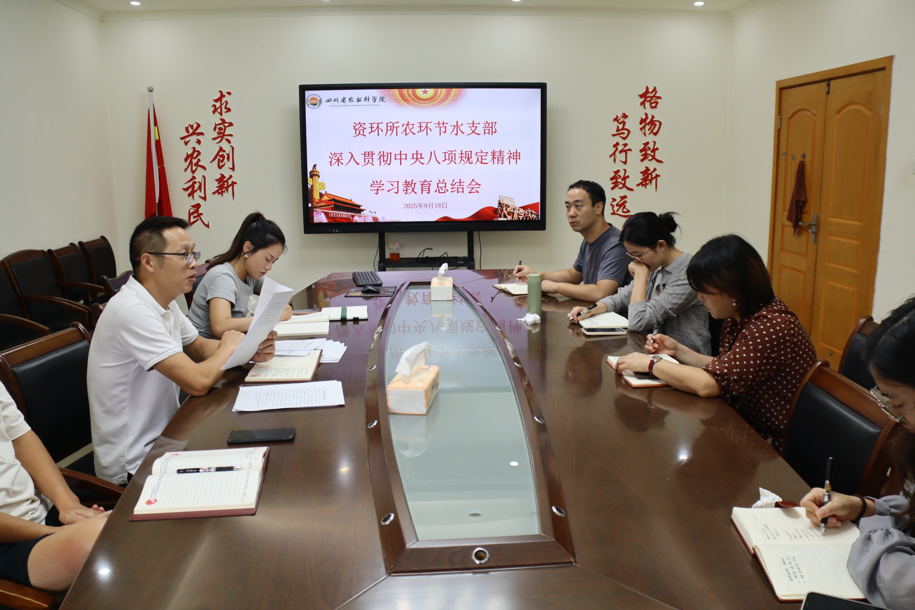 2025年9月18日,院资环所农环与节水党支部在所二楼会议室召开深入贯彻中央八项规定精神学习教育总结会。支部全体党员同志参会,会议由支部书记陈尚洪主持。