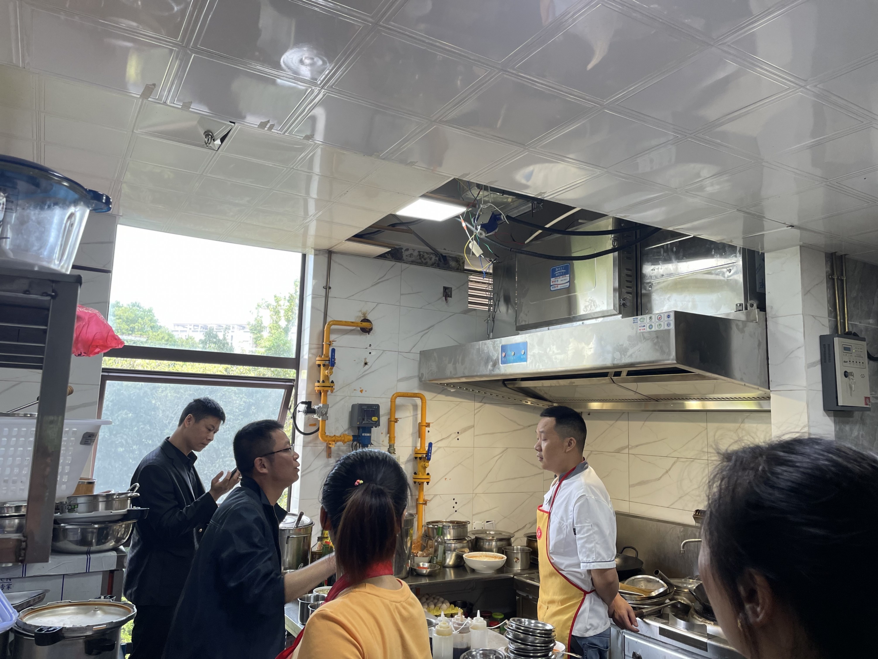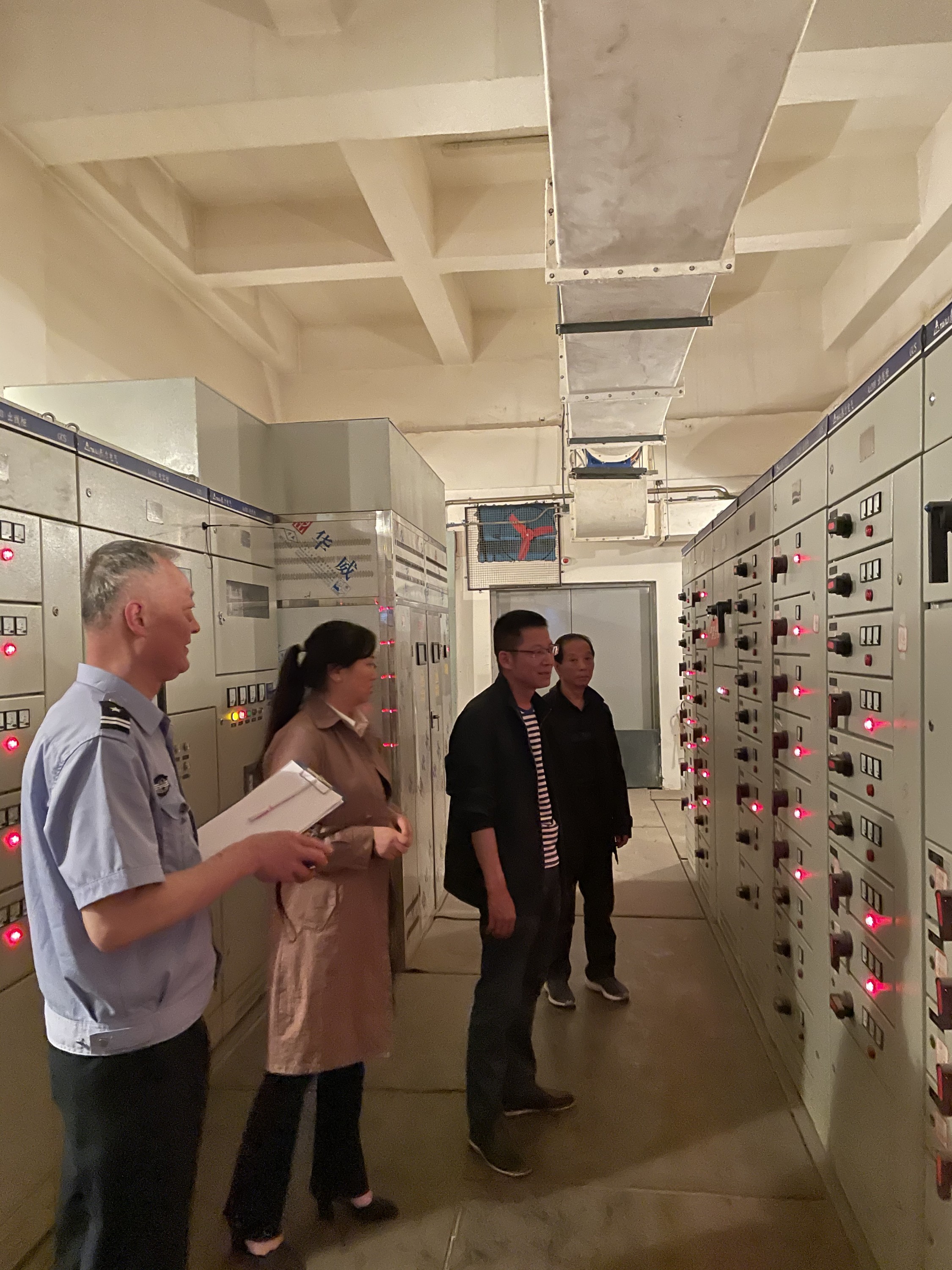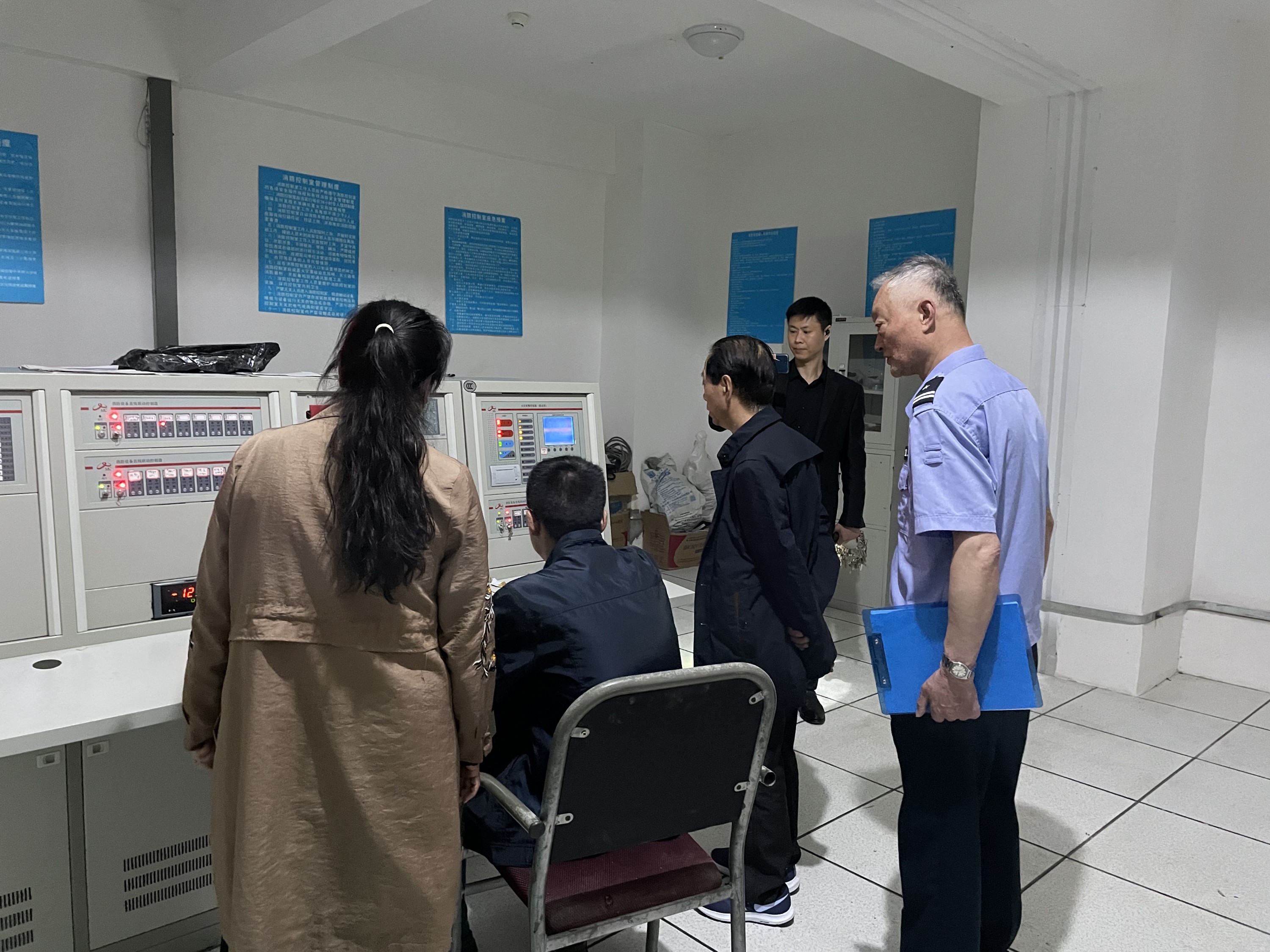 检查组首先进入小区消防控制室、生活用水泵房、消防水泵房、电力控制室、备用发电房、电梯控制室、地下停车库及排水设施房等,实地检查了安全设施设备配备、运营及保养维护状况,并查阅了安全日常记录等管理资料。然后随小区走道、各栋楼楼道查看了环境卫生状况、雨污水设施设备运行状况和疫情防控工作情况,深入汉风茶府和德富串串厨房实地检查了油烟排放状况。