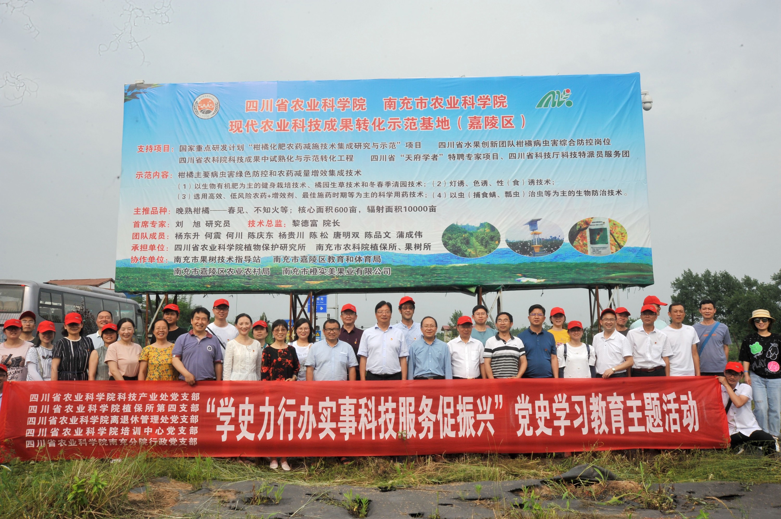 6月7日下午的南充,阳光烈烈、热浪袭人。不过,这样的天气并没有阻挡住五个党支部40余名党员干部的脚步,他(她)在省农科院党委副书记钟毅、副院长杨武云以及南充分院(南充农业科学院)党委书记杨洪江、院长黎德富的带领下,驱车来到嘉陵区李渡镇阁老坟村,与南充市橙实美果业有限公司(以下简称“橙实美公司”)开展结对共建活动,指导该公司的晚熟柑橘产业发展。