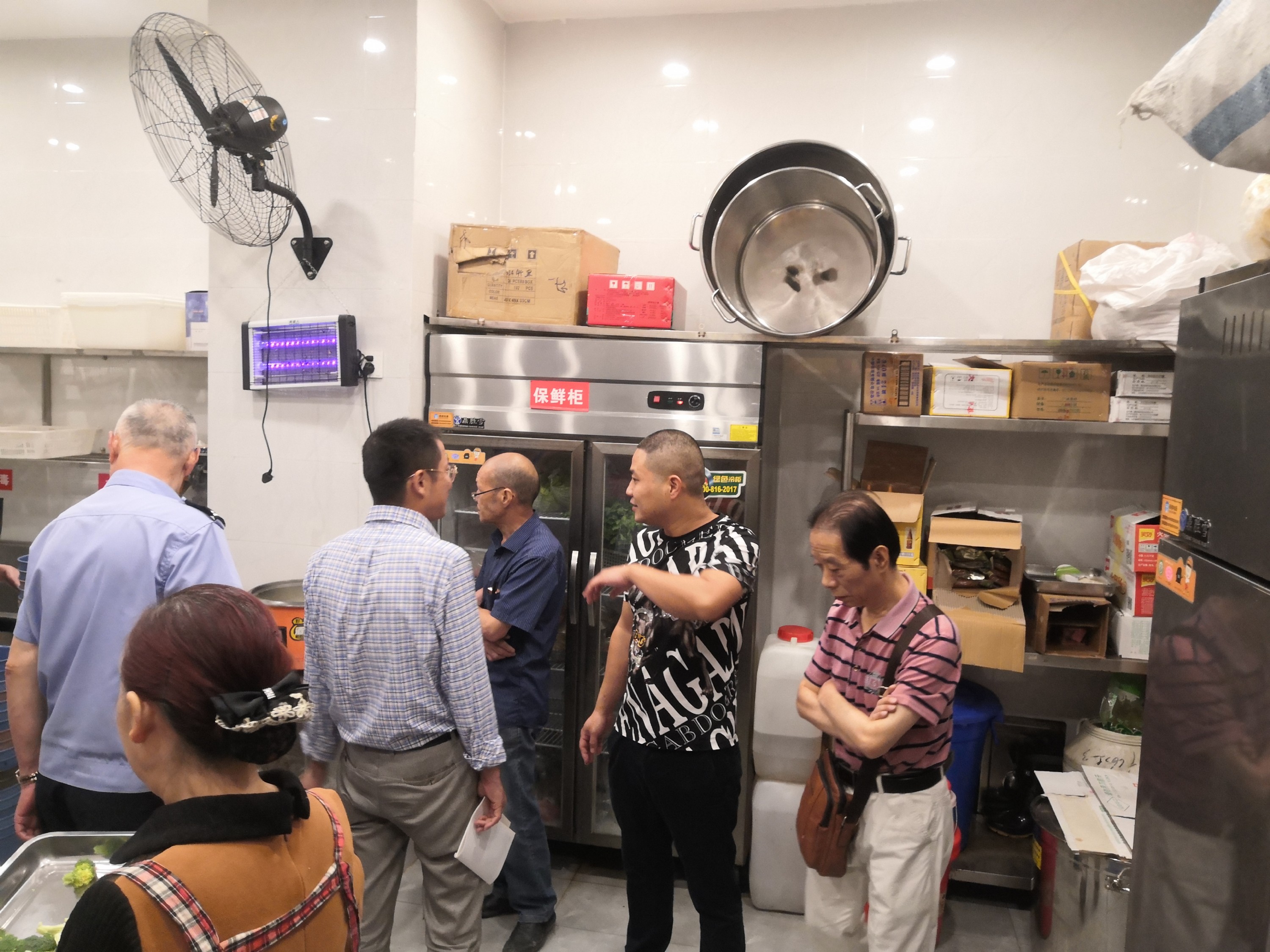 (上图为检查组检查1号楼底楼德富串串香的厨房、大厅安全卫生情况)