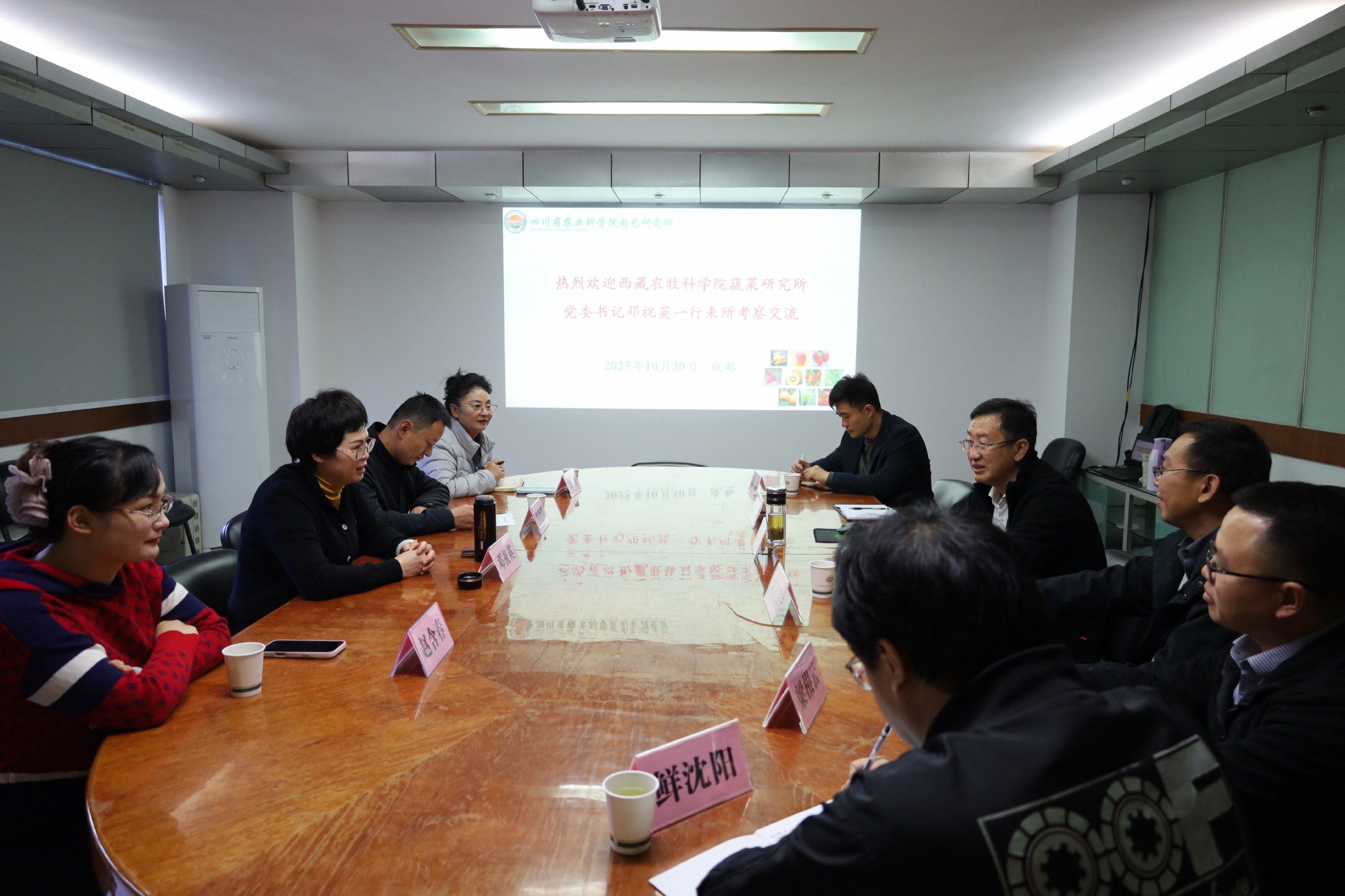 2025年10月30日-31日,西藏自治区农牧科学院蔬菜研究所党委书记邓祝英、副所长李艳锋一行4人到院园艺研究所调研交流。我所党委书记谢红江、总农艺师杨文渊、蔬菜中心主任宋占锋、条财办副主任鲜沈阳,以及国家大宗蔬菜体系川南综合试验站站长梁根云等相关人员陪同调研及交流。