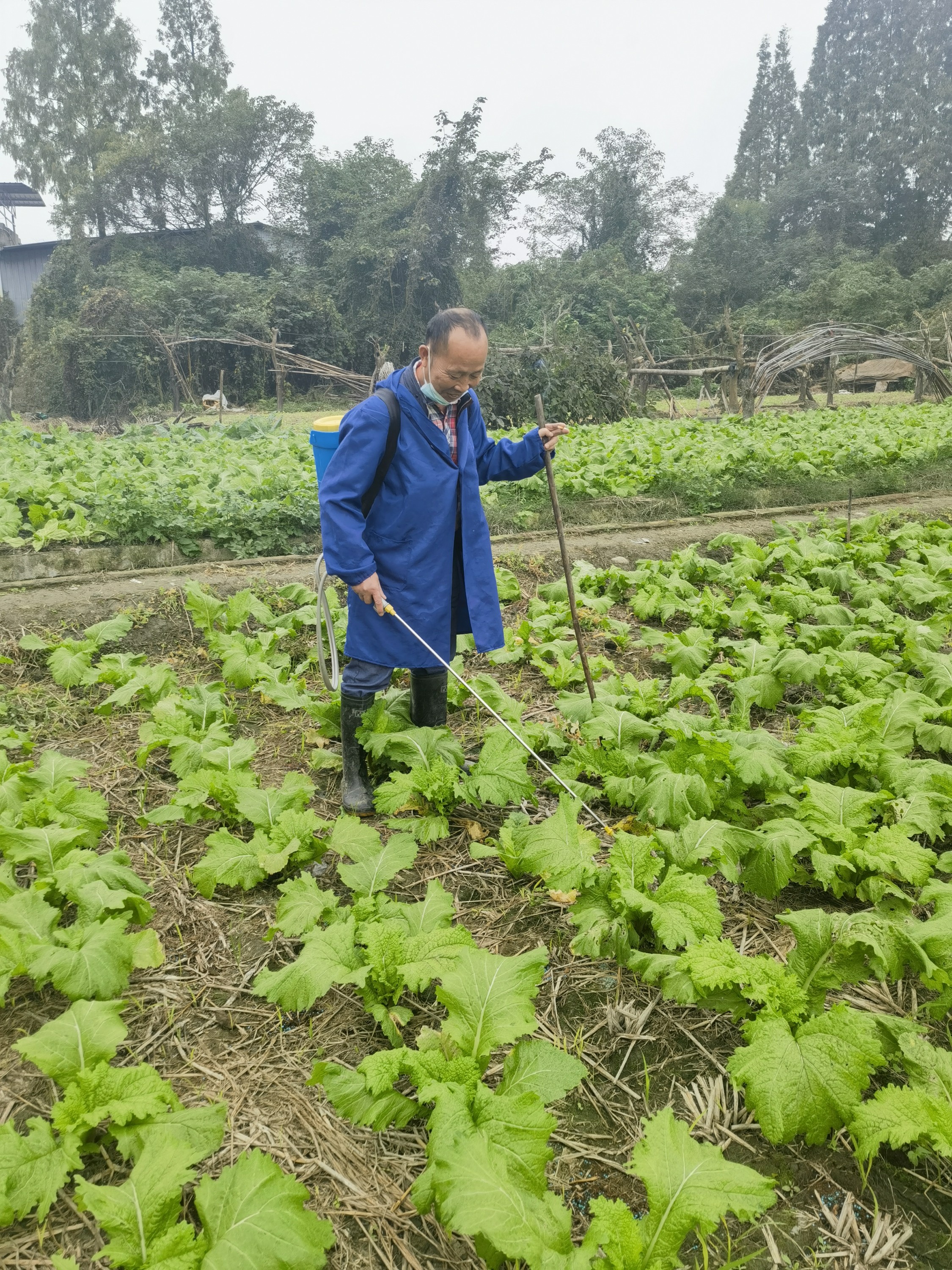 蔬菜种植是三河村村民增收的支柱产业,当前包菜、棒菜等应季十字花科蔬菜进入生长关键期。受四川盆地持续阴雨影响,田间蔬菜出现黄叶、皱缩、叶片水渍状、空洞等症状,直接威胁作物生长与农户收益。专家团队直奔田间,通过症状观察结合农户访谈,精准诊断病害为病毒病与细菌性黑斑病复合发生。随后,团队成员从病害机理、危害及传播路径进行了科普讲解,并传授物理防控、精准施药等实用技术,确保种植户能掌握应用。同时,结合项目需求,团队示范生物制剂灌根技术,以绿色防控手段阻断根肿病发生,为蔬菜全生育期健康生长筑牢防线。